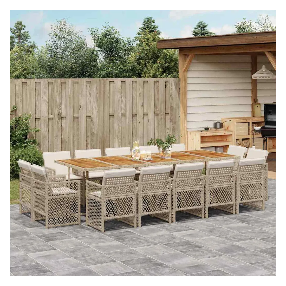 - Matériau : résine tressée, acier enduit de poudre, bois d'acacia massif avec finition à l'huile