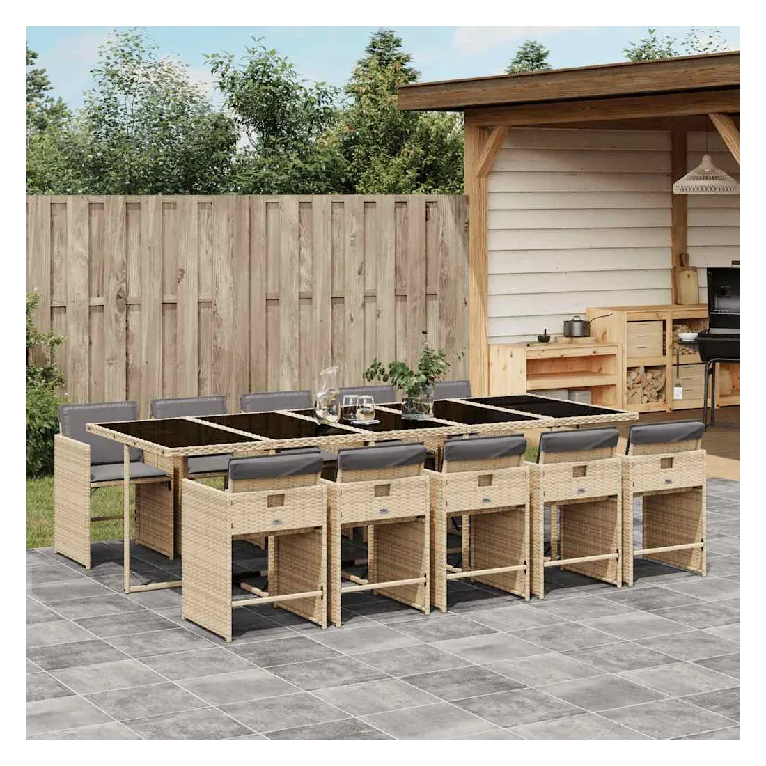 Cet ensemble de salle à manger de jardin est un excellent choix pour les repas en plein air ou pour vous détendre dans le jardin, dans l'arrière-cour ou sur la terrasse. Matériau durable : la résine tressée, également connue sous le nom de poly rotin, est un matériau synthétique solide et nécessitant peu d'entretien qui ressemble au rotin naturel. Il est léger, facile à nettoyer et couramment utilisé pour les meubles d'extérieur en raison de sa durabilité et de ses propriétés de résistance aux intempéries.Rangement compact : ces chaises sont dotées d'un dossier rabattable, ce qui permet de les ranger facilement sous la table. Une fois pliées, elles se rangent parfaitement sous la table, formant un cube peu encombrant.Expérience d'assise confortable : ce mobilier d'extérieur, doté de coussins épais, offre une expérience d'assise confortable.Housse amovible et lavable : ces coussins de siège sont dotés de housses amovibles pour un lavage et un entretien faciles. Les housses de coussin de chaise ont un rabat à l'arrière pour une fixation facile aux chaises.Dessus stable et facile à nettoyer : cette table de jardin est dotée d'un dessus en verre trempé robuste, durable et facile à nettoyer à l'aide d'un chiffon humide. Bon à savoir : Pour que vos meubles d'extérieur restent beaux, nous vous recommandons de les protéger avec une housse imperméable.