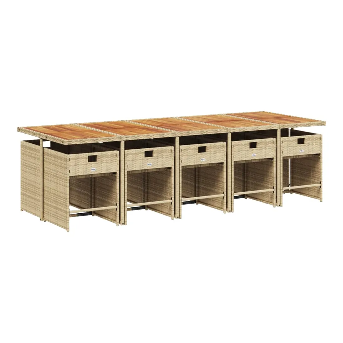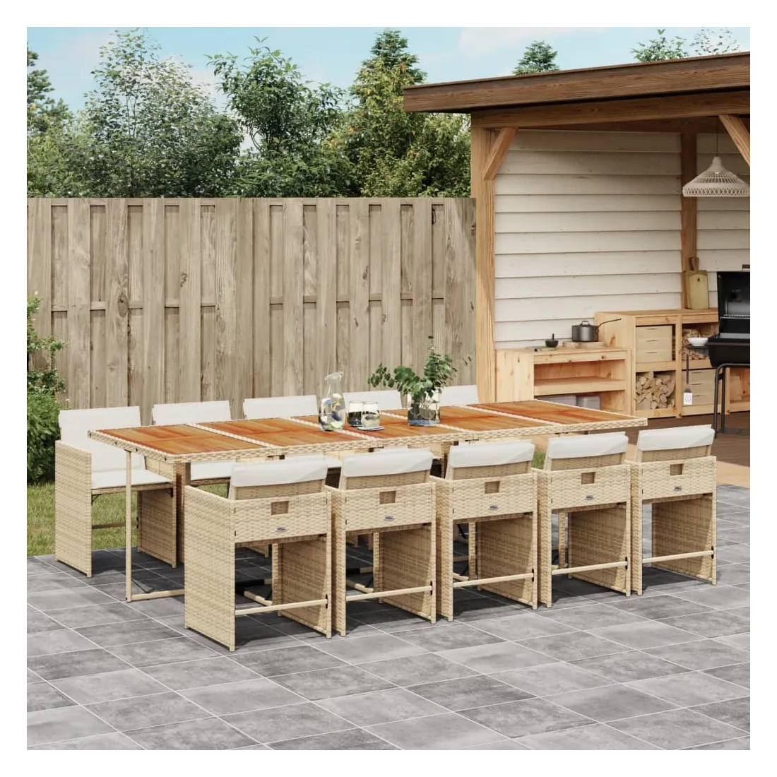 Ensemble à manger de jardin et coussins 11 pcs beige poly rotin