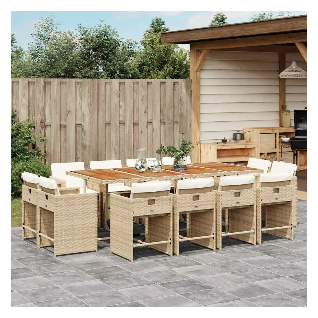 - Matériau : résine tressée, acier enduit de poudre, bois d'acacia massif
