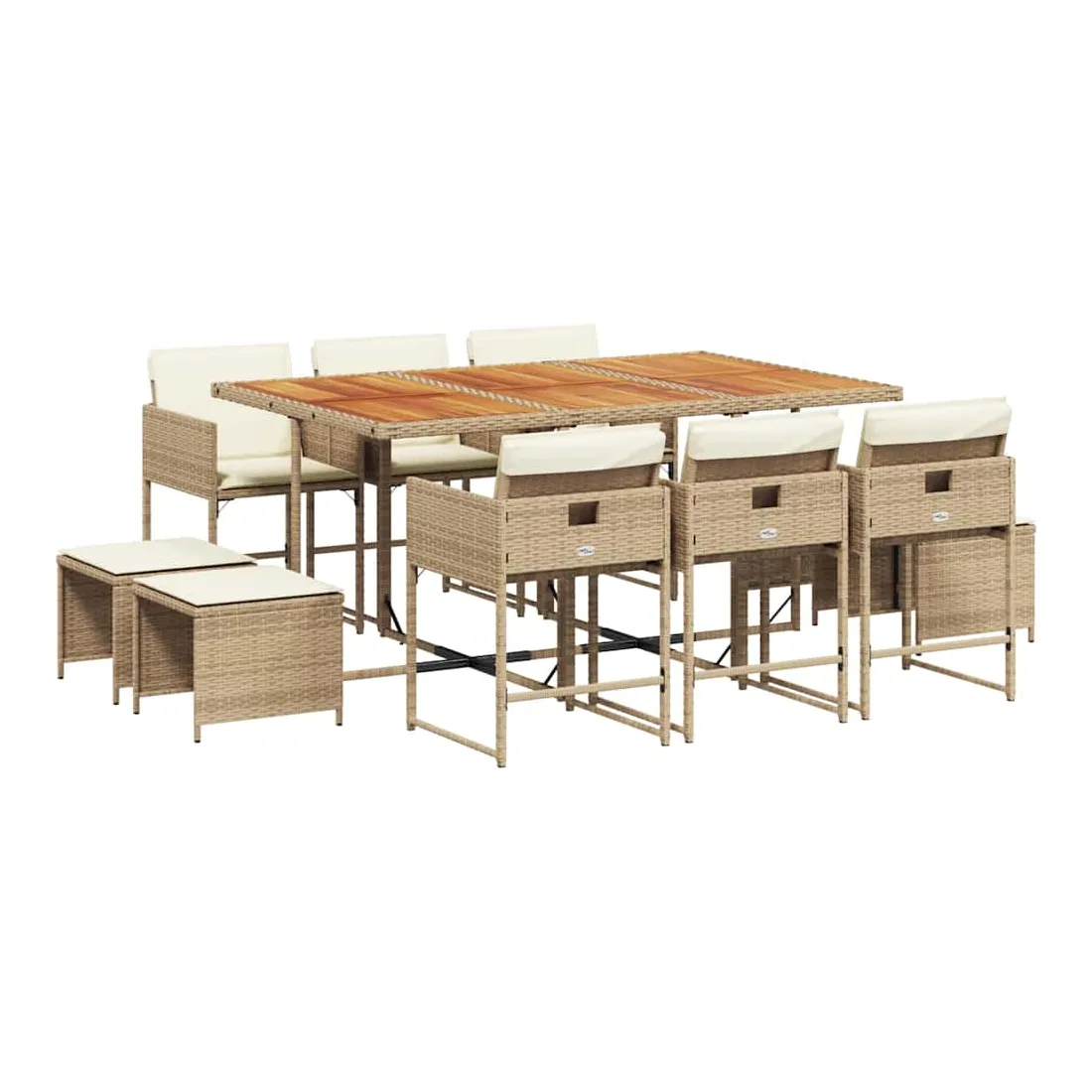 Ensemble à manger de jardin et coussins 11 pcs beige poly rotin