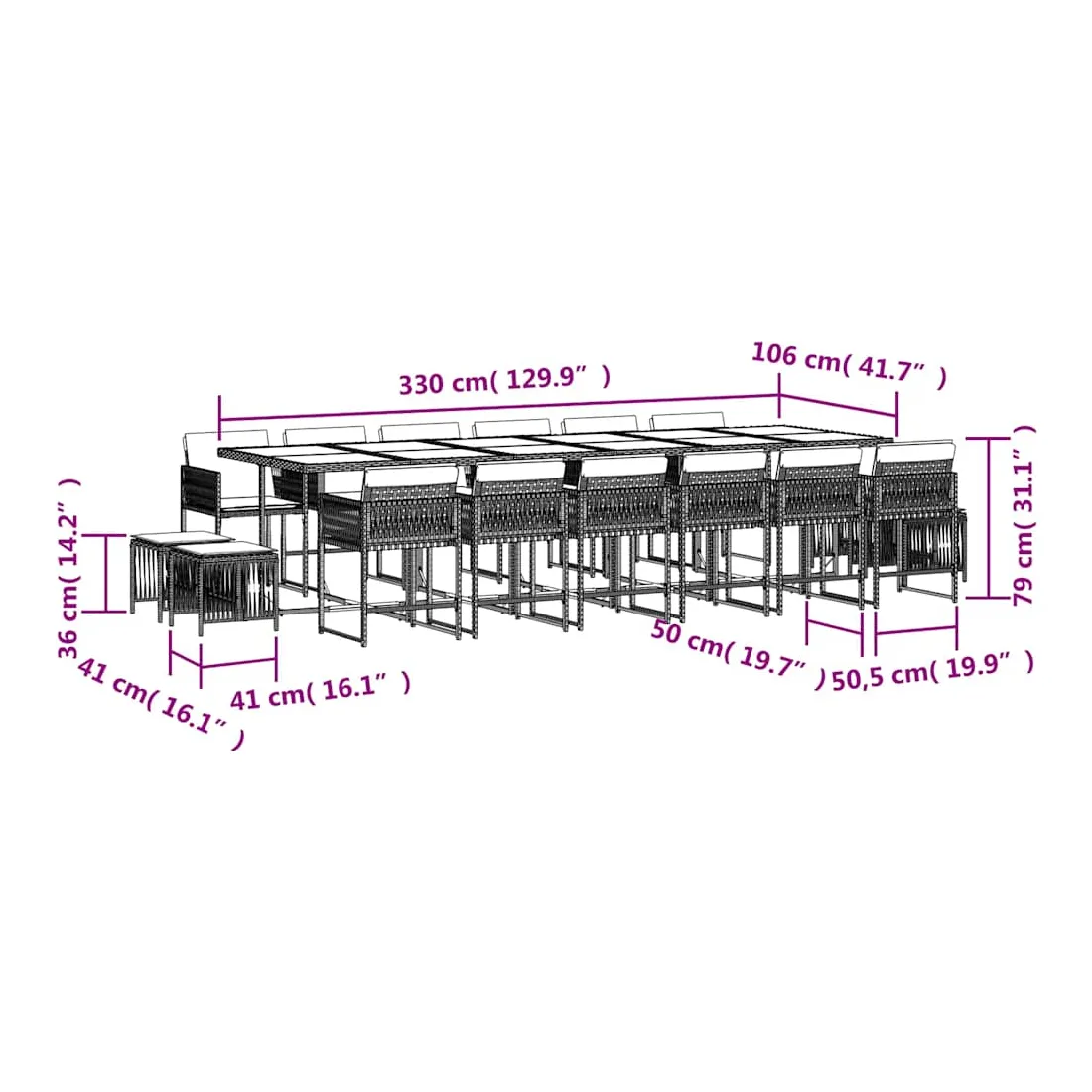 - Dimensions : 330 x 106 x 73 cm (L x l x H)