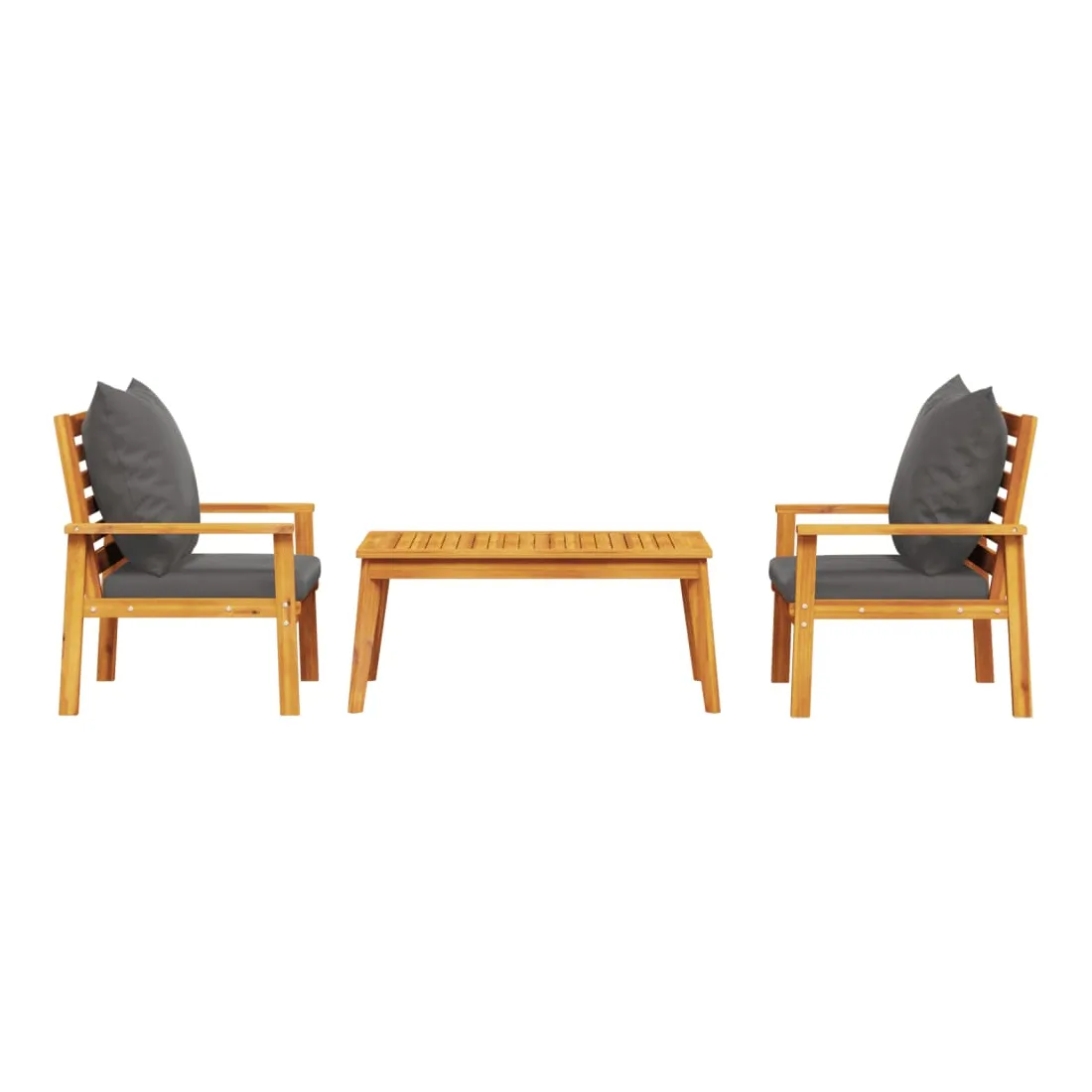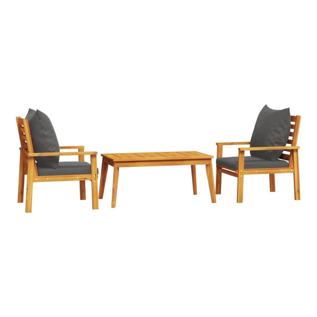 Cet ensemble de salon de jardin en bois a un design élégant et constitue un excellent choix pour vous détendre et profiter du jardin ou du patio. Bois d'acacia massif : l'ensemble de salon d'extérieur est fabriqué en bois d'acacia massif pour plus de robustesse et de stabilité. Le bois d'acacia solide est un beau matériau naturel. Le bois d'acacia a de beaux grains de bois qui rendent chaque meuble unique et légèrement différent les uns des autres.Expérience d'assise confortable : doté d'accoudoirs et d'un dossier, l'ensemble de salon de terrasse vous offre le plus grand confort. De plus, les coussins bien rembourrés offrent du confort pendant votre temps d'assise.Dessus stable et facile à nettoyer : cette table de jardin a un dessus en bois d'acacia robuste, durable et facile à nettoyer avec un chiffon humide.Nombreuses applications : le siège de jardin est parfait pour tout porche avant, patio, arrière-cour, pelouse, jardin, etc. Bon à savoir :Pour que vos meubles d'extérieur restent beaux, nous vous recommandons de les protéger avec une housse imperméable.