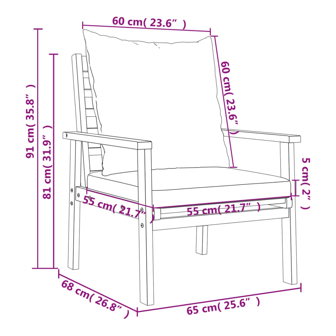 - Taille du coussin de siège : 55 x 55 x 7 cm (l x P x é)
