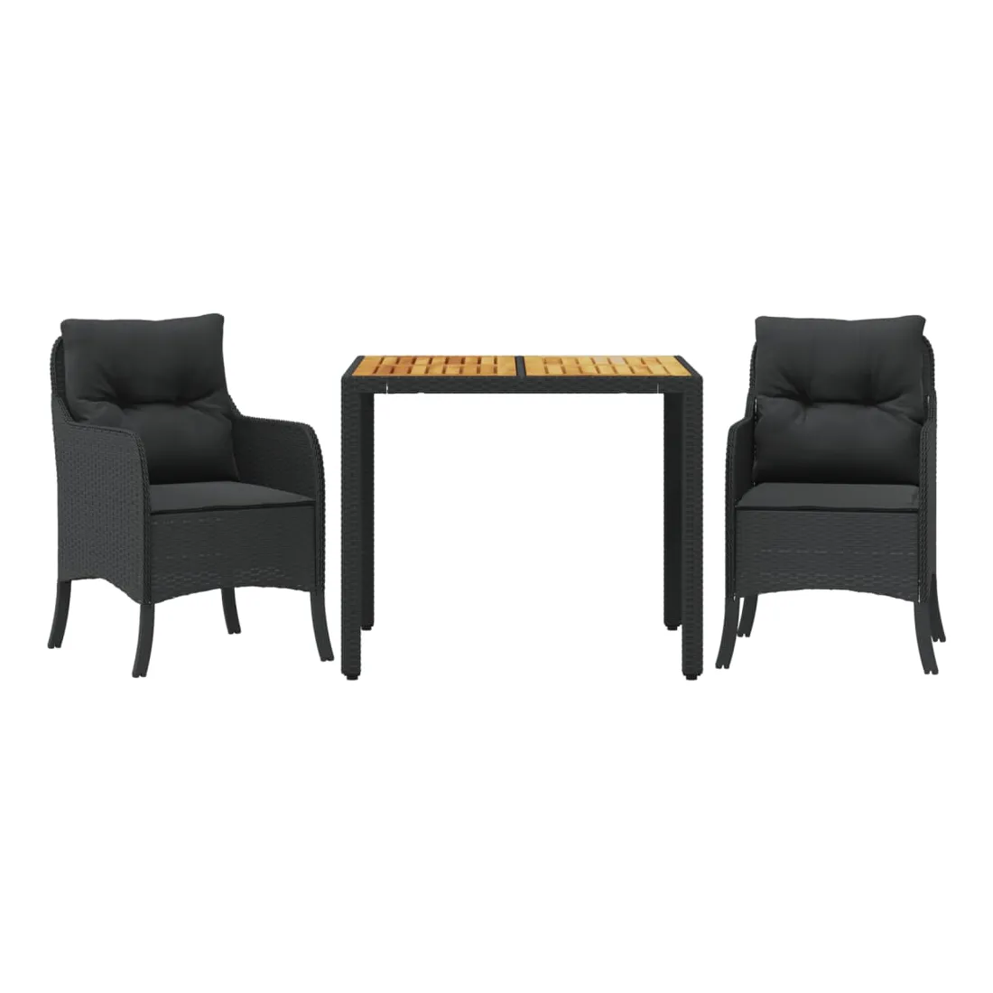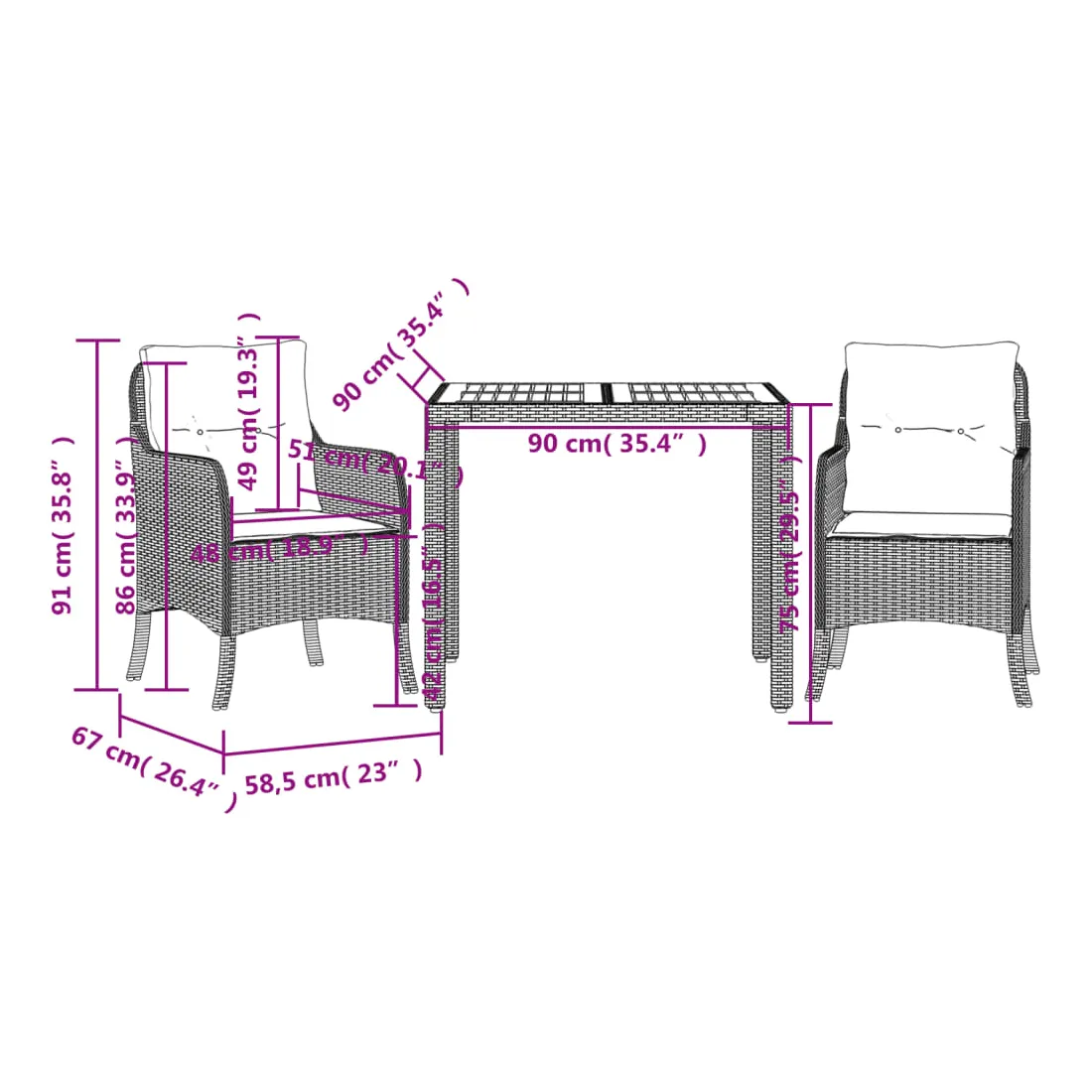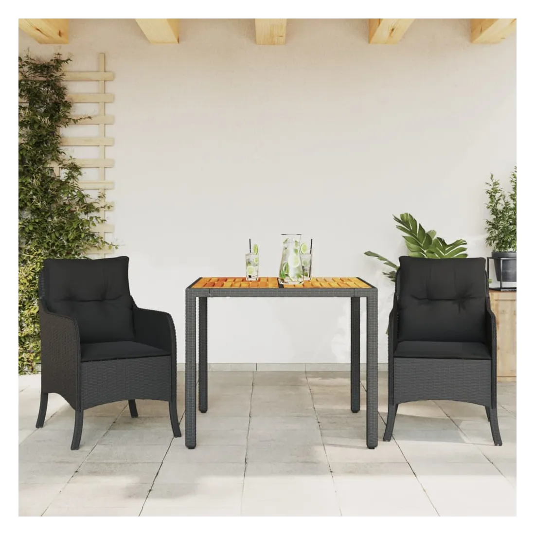 Cet ensemble de salle à manger de jardin est un excellent choix pour les repas en plein air ou pour vous détendre dans le jardin, l'arrière-cour ou le patio. Matériau durable : la résine tressée, également connue sous le nom de poly rotin, est un matériau synthétique solide et nécessitant peu d'entretien qui ressemble au rotin naturel. Il est léger, facile à nettoyer et couramment utilisé pour les meubles d'extérieur en raison de sa durabilité et de ses propriétés de résistance aux intempéries.Expérience d'assise confortable : ce mobilier d'extérieur, doté de coussins épais, offre une expérience d'assise confortable.Housse amovible et lavable : ces coussins de siège sont dotés de housses amovibles pour un lavage et un entretien faciles. Les housses de coussin de chaise ont un rabat à l'arrière pour une fixation facile aux chaises.Dessus stable et facile à nettoyer : cette table de jardin a un dessus en bois d'acacia robuste, durable et facile à nettoyer avec un chiffon humide.Cadre robuste et stable : le cadre en acier enduit de poudre assure la solidité et la stabilité du meuble de jardin pour une utilisation quotidienne à l'extérieur. Bon à savoir :Pour que vos meubles d'extérieur restent beaux, nous vous recommandons de les protéger avec une housse imperméable.