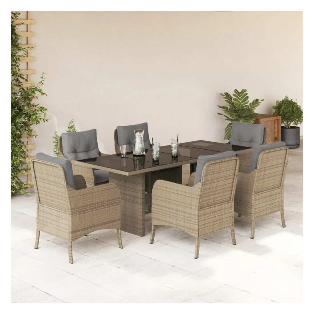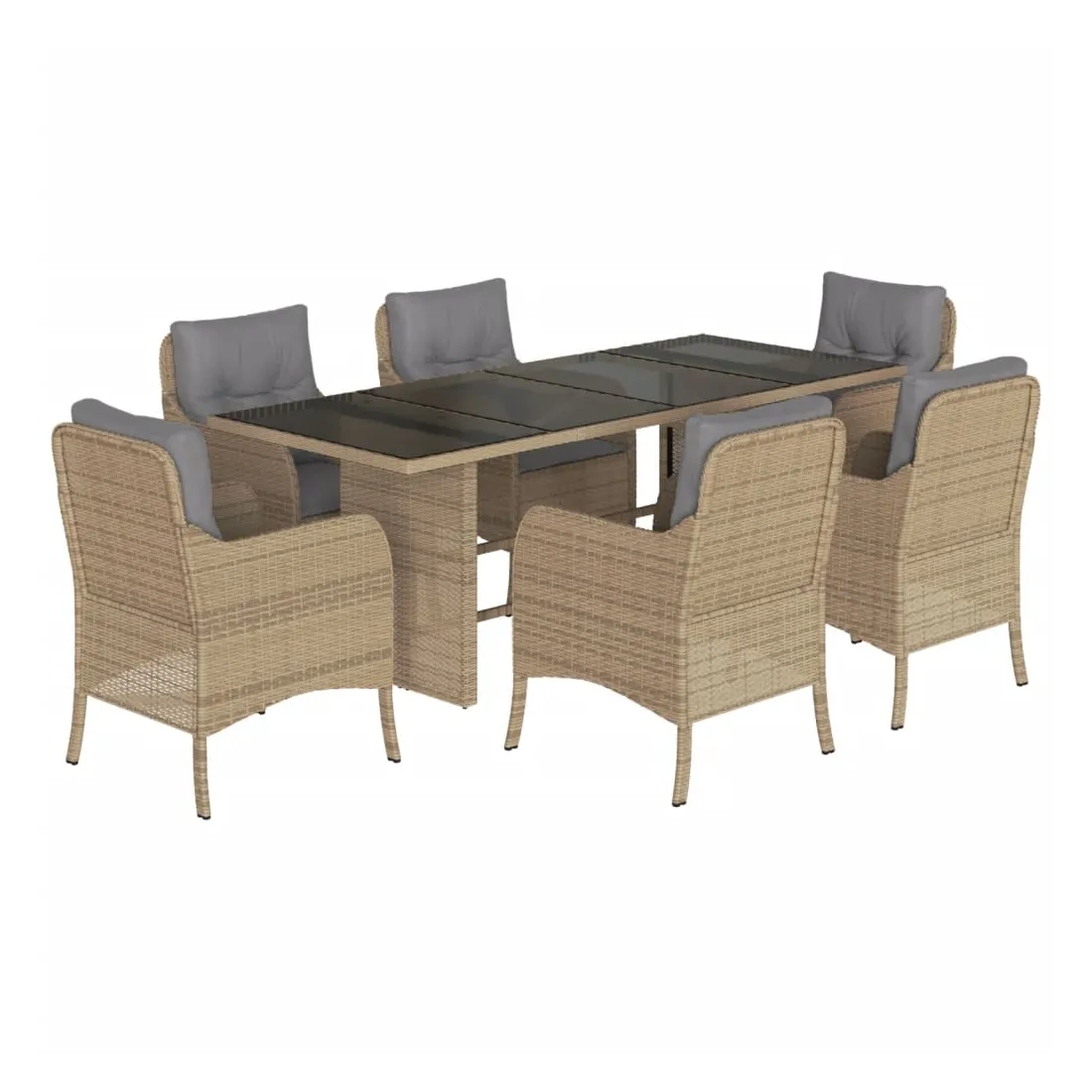 Ensemble à manger de jardin et coussins 7 pcs beige poly rotin