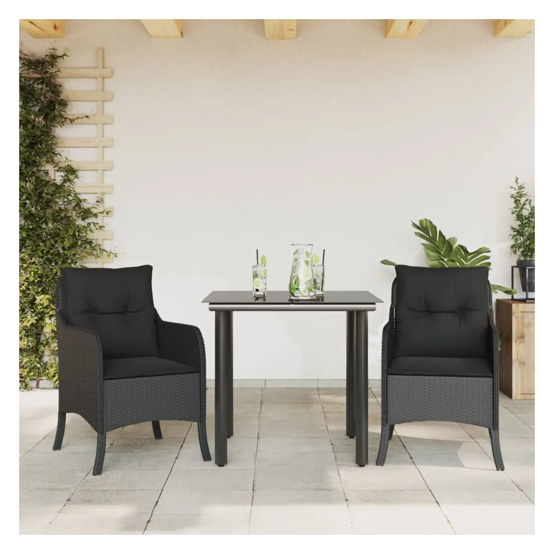 Cet ensemble de salle à manger de jardin est un excellent choix pour les repas en plein air ou pour vous détendre dans le jardin, l'arrière-cour ou le patio. Matériau durable : la résine tressée, également connue sous le nom de poly rotin, est un matériau synthétique solide et nécessitant peu d'entretien qui ressemble au rotin naturel. Il est léger, facile à nettoyer et couramment utilisé pour les meubles d'extérieur en raison de sa durabilité et de ses propriétés de résistance aux intempéries.Expérience d'assise confortable : ce mobilier d'extérieur, doté de coussins épais, offre une expérience d'assise confortable.Housse amovible et lavable : ces coussins de siège sont dotés de housses amovibles pour un lavage et un entretien faciles.Dessus en verre : le dessus de la table d'extérieur est fabriqué en verre trempé solide et durable, ce qui le rend facile à nettoyer avec un chiffon humide et ajoute une touche d'élégance à votre espace extérieur.Cadre robuste et stable : le cadre en acier enduit de poudre assure la solidité et la stabilité du meuble de jardin pour une utilisation quotidienne à l'extérieur. Bon à savoir :Pour que vos meubles d'extérieur restent beaux, nous vous recommandons de les protéger avec une housse imperméable.
