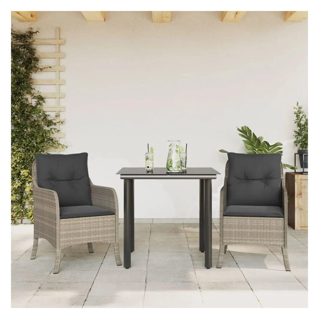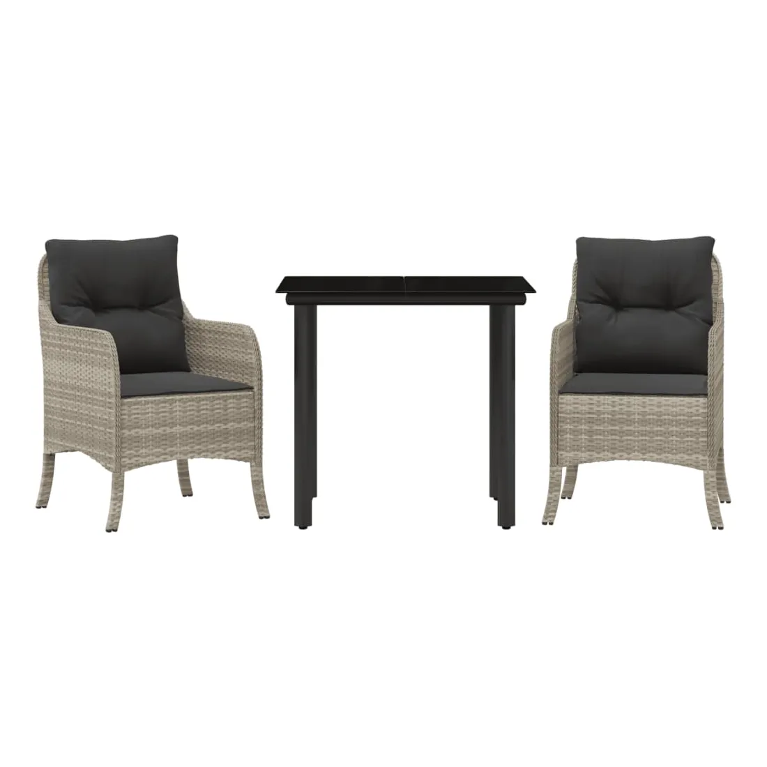 Cet ensemble de salle à manger de jardin est un excellent choix pour les repas en plein air ou pour vous détendre dans le jardin, l'arrière-cour ou le patio. Matériau durable : la résine tressée, également connue sous le nom de poly rotin, est un matériau synthétique solide et nécessitant peu d'entretien qui ressemble au rotin naturel. Il est léger, facile à nettoyer et couramment utilisé pour les meubles d'extérieur en raison de sa durabilité et de ses propriétés de résistance aux intempéries.Expérience d'assise confortable : ce mobilier d'extérieur, doté de coussins épais, offre une expérience d'assise confortable.Housse amovible et lavable : ces coussins de siège sont dotés de housses amovibles pour un lavage et un entretien faciles.Dessus en verre : le dessus de la table d'extérieur est fabriqué en verre trempé solide et durable, ce qui le rend facile à nettoyer avec un chiffon humide et ajoute une touche d'élégance à votre espace extérieur.Cadre robuste et stable : le cadre en acier enduit de poudre assure la solidité et la stabilité du meuble de jardin pour une utilisation quotidienne à l'extérieur. Bon à savoir :Pour que vos meubles d'extérieur restent beaux, nous vous recommandons de les protéger avec une housse imperméable.