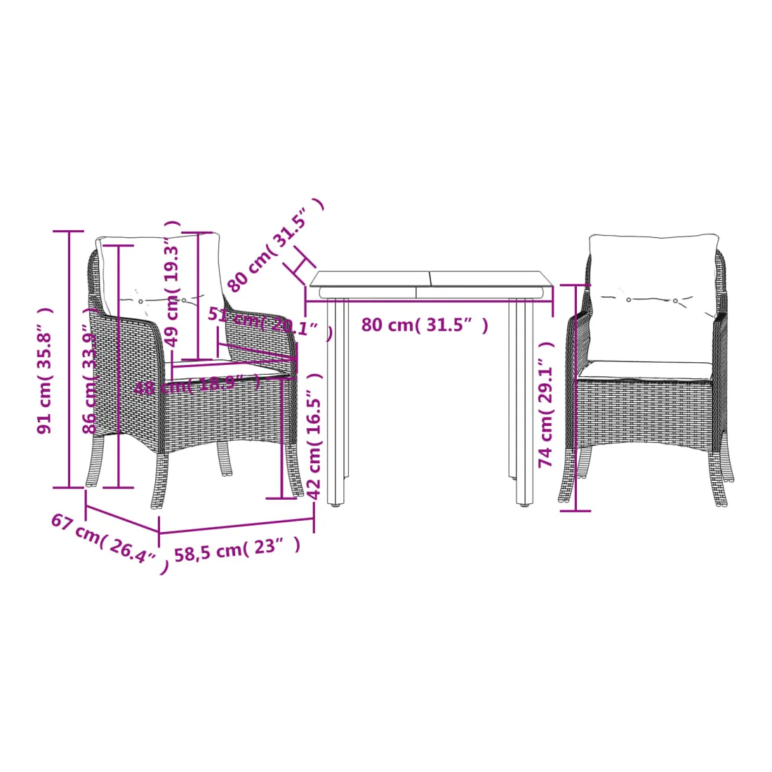 - Dimensions : 80 x 80 x 74 cm (L x l x H)