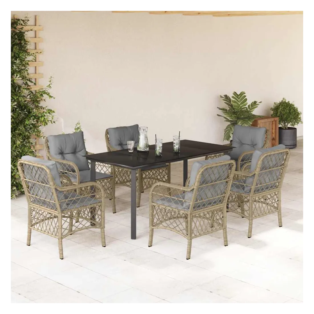 Ensemble à manger de jardin coussins 7 pcs mélange beige rotin