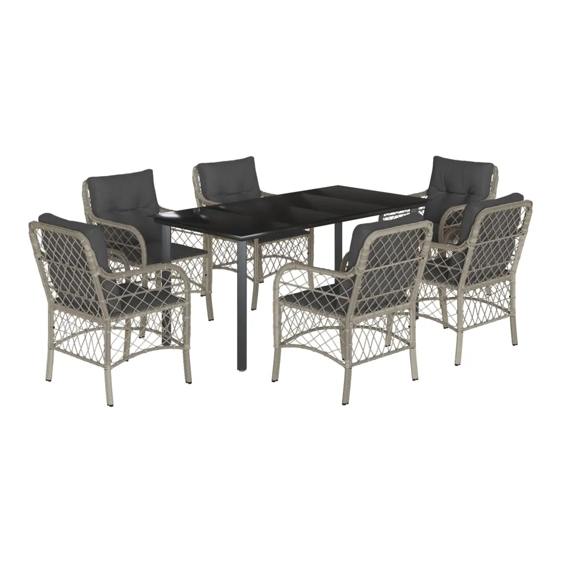 vidaXLCet ensemble de salle à manger de jardin est un excellent choix pour les repas en plein air ou pour vous détendre dans le jardin, l'arrière-cour ou le patio. Matériau durable : la résine tressée, également connue sous le nom de poly rotin, est un matériau synthétique solide et nécessitant peu d'entretien qui ressemble au rotin naturel. Il est léger, facile à nettoyer et couramment utilisé pour les meubles d'extérieur en raison de sa durabilité et de ses propriétés de résistance aux intempéries.Expérience d'assise confortable : ce mobilier d'extérieur, doté de coussins épais, offre une expérience d'assise confortable.Housse amovible et lavable : ces coussins de siège sont dotés de housses amovibles pour un lavage et un entretien faciles.Dessus en verre : le dessus de la table d'extérieur est fabriqué en verre trempé solide et durable, ce qui le rend facile à nettoyer avec un chiffon humide et ajoute une touche d'élégance à votre espace extérieur.Cadre robuste et stable : le cadre en acier enduit de poudre assure la solidité et la stabilité du meuble de jardin pour une utilisation quotidienne à l'extérieur. Bon à savoir :Pour que vos meubles d'extérieur restent beaux, nous vous recommandons de les protéger avec une housse imperméable.