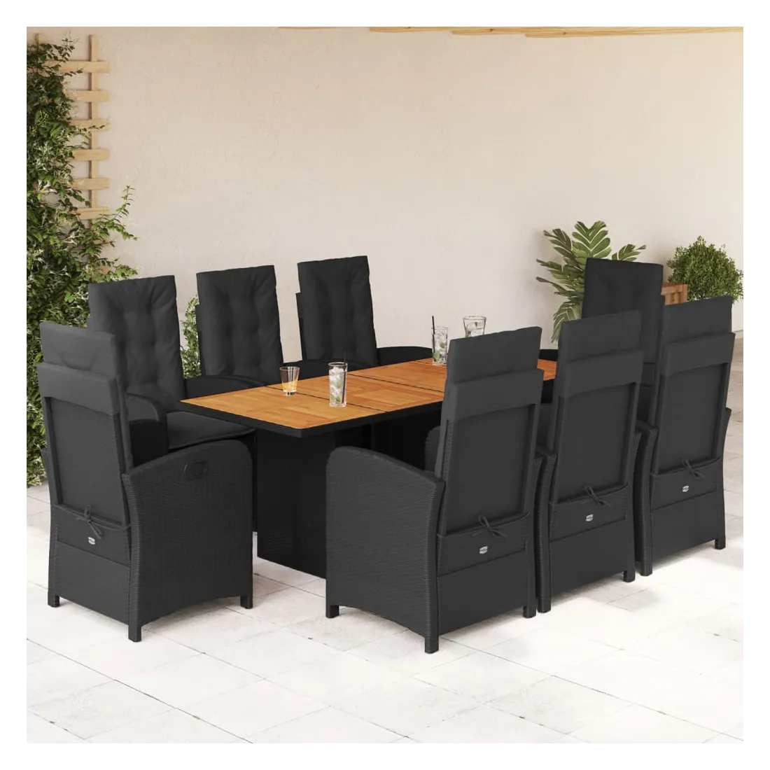 Cet ensemble de salle à manger de jardin est un excellent choix pour les repas en plein air ou pour vous détendre dans le jardin, dans l'arrière-cour ou sur la terrasse. Matériau durable : la résine tressée, également connue sous le nom de poly rotin, est un matériau synthétique solide et nécessitant peu d'entretien qui ressemble au rotin naturel. Il est léger, facile à nettoyer et couramment utilisé pour les meubles d'extérieur en raison de sa durabilité et de ses propriétés de résistance aux intempéries.Rangement compact : ces chaises sont dotées d'un dossier rabattable, ce qui permet de les ranger facilement sous la table. Une fois pliées, elles se rangent parfaitement sous la table, formant un cube peu encombrant. Expérience d'assise confortable : ce mobilier d'extérieur, doté de coussins épais, offre une expérience d'assise confortable.Housse amovible et lavable : ces coussins de siège sont dotés de housses amovibles pour un lavage et un entretien faciles.Dessus stable et facile à nettoyer : cette table de jardin a un dessus en bois d'acacia robuste, durable et facile à nettoyer avec un chiffon humide. Bon à savoir : Pour que vos meubles d'extérieur restent beaux, nous vous recommandons de les protéger avec une housse imperméable.