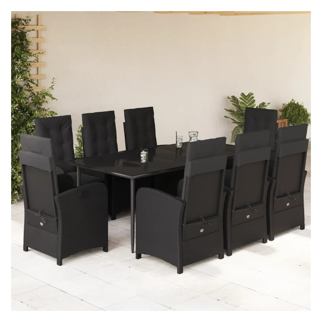 Cet ensemble de salle à manger de jardin est un excellent choix pour les repas en plein air ou pour vous détendre dans le jardin, dans l'arrière-cour ou sur la terrasse. Matériau durable : la résine tressée, également connue sous le nom de poly rotin, est un matériau synthétique solide et nécessitant peu d'entretien qui ressemble au rotin naturel. Il est léger, facile à nettoyer et couramment utilisé pour les meubles d'extérieur en raison de sa durabilité et de ses propriétés de résistance aux intempéries.Dossier réglable : ce siège de jardin est doté d'une poignée. Vous pouvez régler le dossier dans n'importe quelle position en tirant sur la poignée et le remettre rapidement dans sa position initiale.Expérience d'assise confortable : ce mobilier d'extérieur, doté de coussins épais, offre une expérience d'assise confortable.Housse amovible et lavable : ces coussins de siège sont dotés de housses amovibles pour un lavage et un entretien faciles. Les coussins de dossier ont un rabat à l'arrière pour une fixation facile aux dossiers.Dessus en verre : le dessus de la table d'extérieur est fabriqué en verre trempé solide et durable, ce qui le rend facile à nettoyer avec un chiffon humide et ajoute une touche d'élégance à votre espace extérieur. Bon à savoir :Pour que vos meubles d'extérieur restent beaux, nous vous recommandons de les protéger avec une housse imperméable.