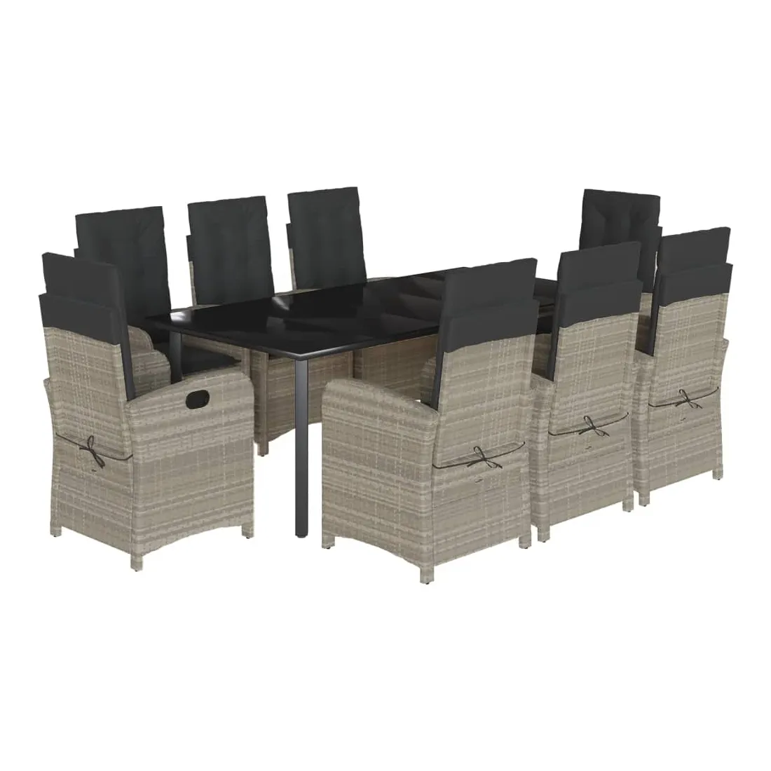 Ensemble à manger de jardin et coussins 9 pcs gris clair rotin