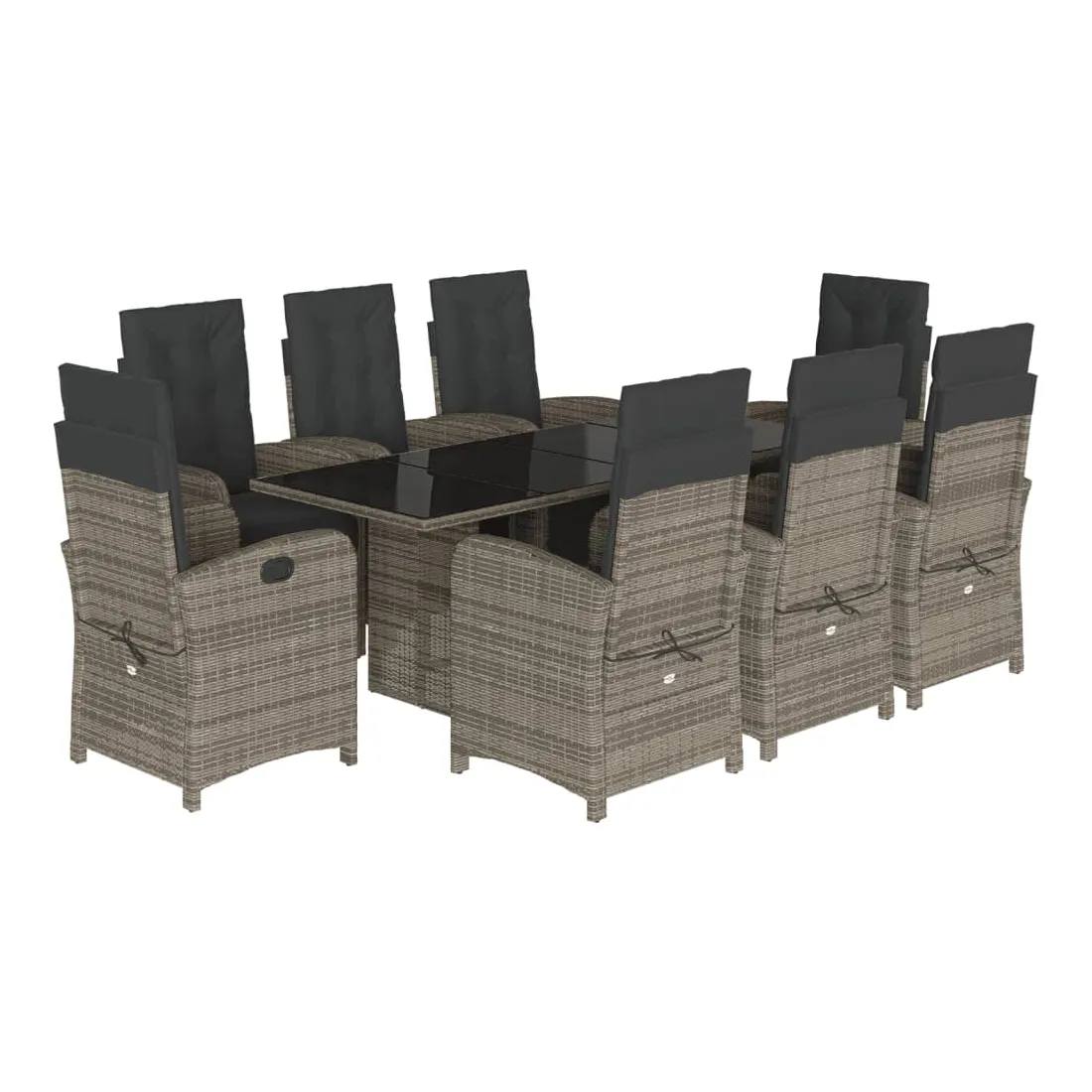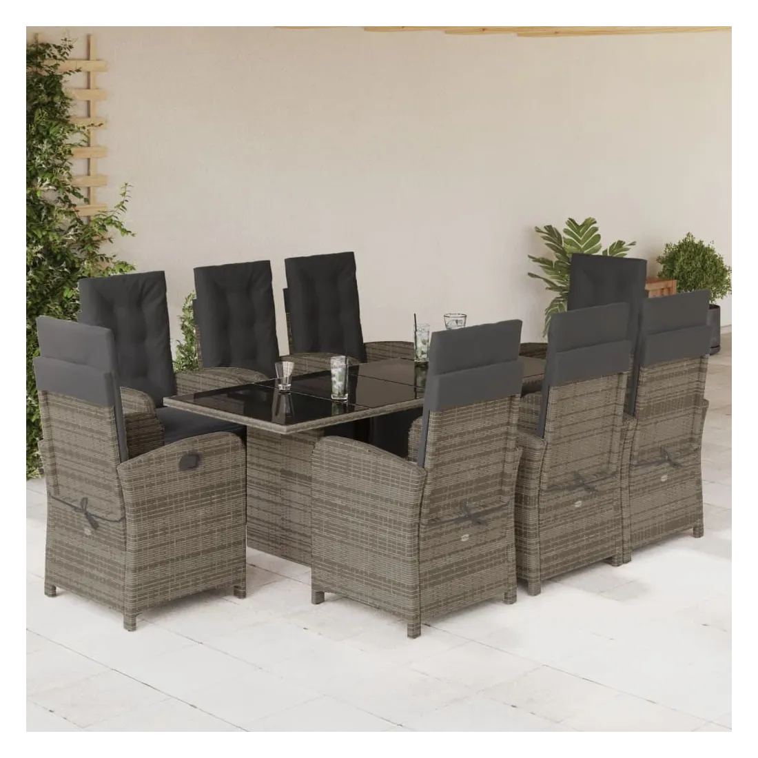 Ensemble à manger de jardin 9 pcs coussins gris résine tressée