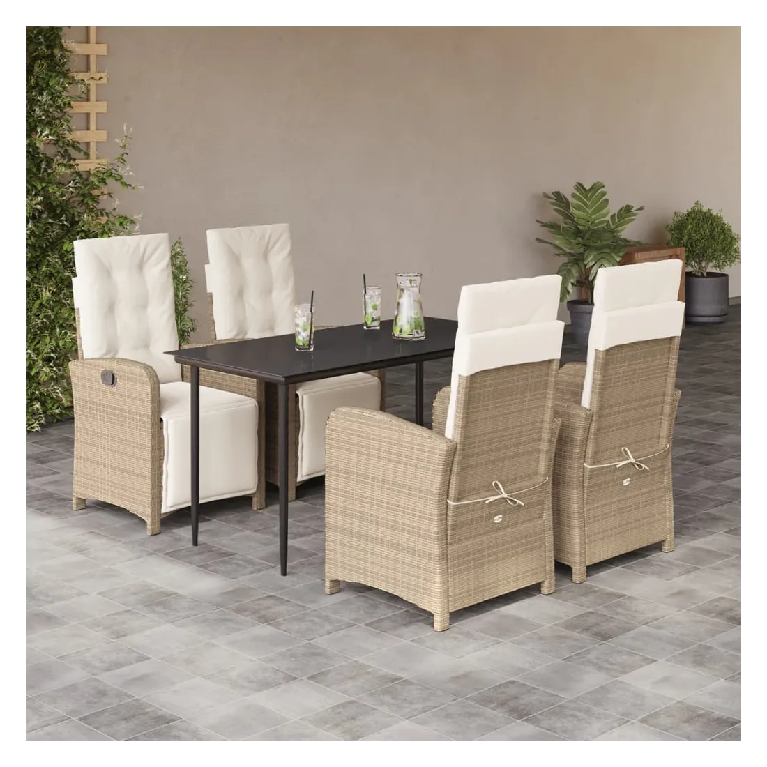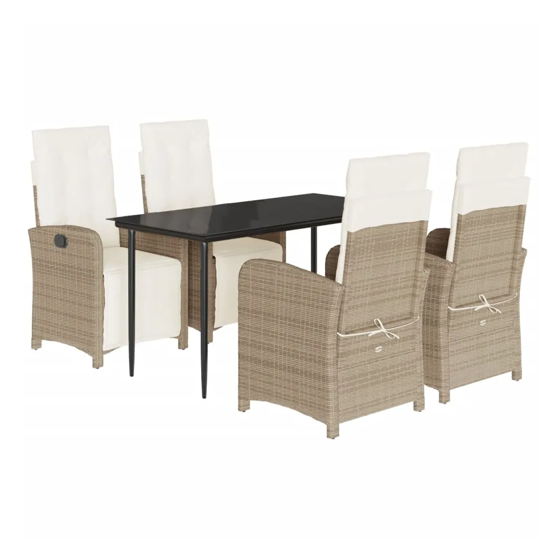 Ensemble à manger de jardin avec coussins 5pcs Beige poly rotin