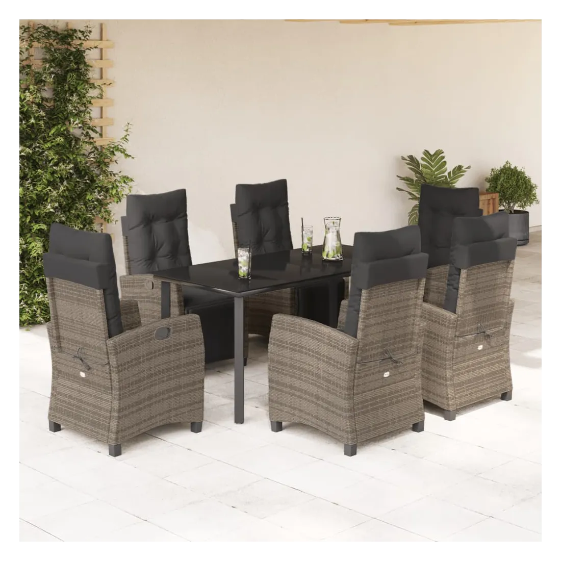 Cet ensemble de salle à manger de jardin est un excellent choix pour les repas en plein air ou pour vous détendre dans le jardin, l'arrière-cour ou le patio. Matériau durable : la résine tressée, également connue sous le nom de poly rotin, est un matériau synthétique solide et nécessitant peu d'entretien qui ressemble au rotin naturel. Il est léger, facile à nettoyer et couramment utilisé pour les meubles d'extérieur en raison de sa durabilité et de ses propriétés de résistance aux intempéries.Dossier et repose-pied réglables : ce siège de jardin est doté d'une poignée. Vous pouvez régler le dossier et le repose-pied dans n'importe quelle position en tirant sur la poignée, et les remettre rapidement dans leur position initiale.Dessus en verre : le dessus de la table d'extérieur est fabriqué en verre trempé solide et durable, ce qui le rend facile à nettoyer avec un chiffon humide et ajoute une touche d'élégance à votre espace extérieur.Expérience d'assise confortable : ce mobilier d'extérieur, doté de coussins épais, offre une expérience d'assise confortable.Housse amovible et lavable : ces coussins de siège sont dotés de housses amovibles pour un lavage et un entretien faciles. Bon à savoir :Pour que vos meubles d'extérieur restent beaux, nous vous recommandons de les protéger avec une housse imperméable.