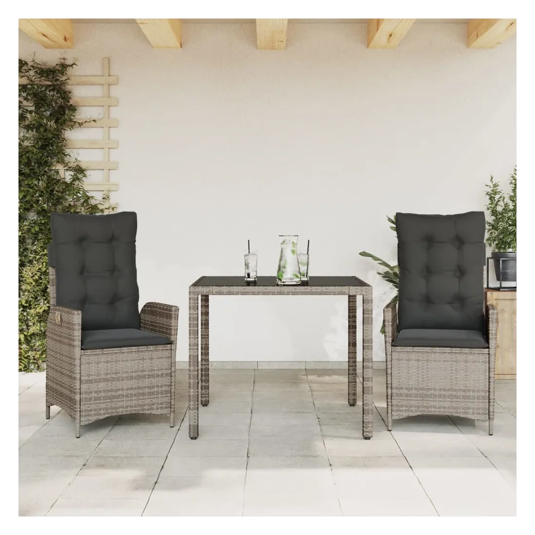 vidaXLCet ensemble de salle à manger de jardin est un excellent choix pour les repas en plein air ou pour vous détendre dans le jardin, dans l'arrière-cour ou sur la terrasse. Matériau durable : la résine tressée, également connue sous le nom de poly rotin, est un matériau synthétique solide et nécessitant peu d'entretien qui ressemble au rotin naturel. Il est léger, facile à nettoyer et couramment utilisé pour les meubles d'extérieur en raison de sa durabilité et de ses propriétés de résistance aux intempéries.Dossier réglable : ce siège de jardin est doté d'une poignée. Vous pouvez régler le dossier dans n'importe quelle position en tirant sur la poignée et le remettre rapidement dans sa position initiale.Expérience d'assise confortable : ce mobilier d'extérieur, doté de coussins épais, offre une expérience d'assise confortable.Housse amovible et lavable : ces coussins de siège sont dotés de housses amovibles pour un lavage et un entretien faciles. Les coussins de dossier ont un rabat à l'arrière pour une fixation facile aux dossiers.Dessus en verre : le dessus de la table d'extérieur est fabriqué en verre trempé solide et durable, ce qui le rend facile à nettoyer avec un chiffon humide et ajoute une touche d'élégance à votre espace extérieur. Bon à savoir : Pour que vos meubles d'extérieur restent beaux, nous vous recommandons de les protéger avec une housse imperméable.