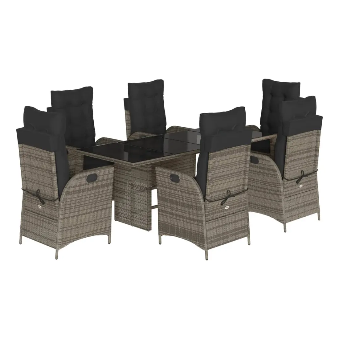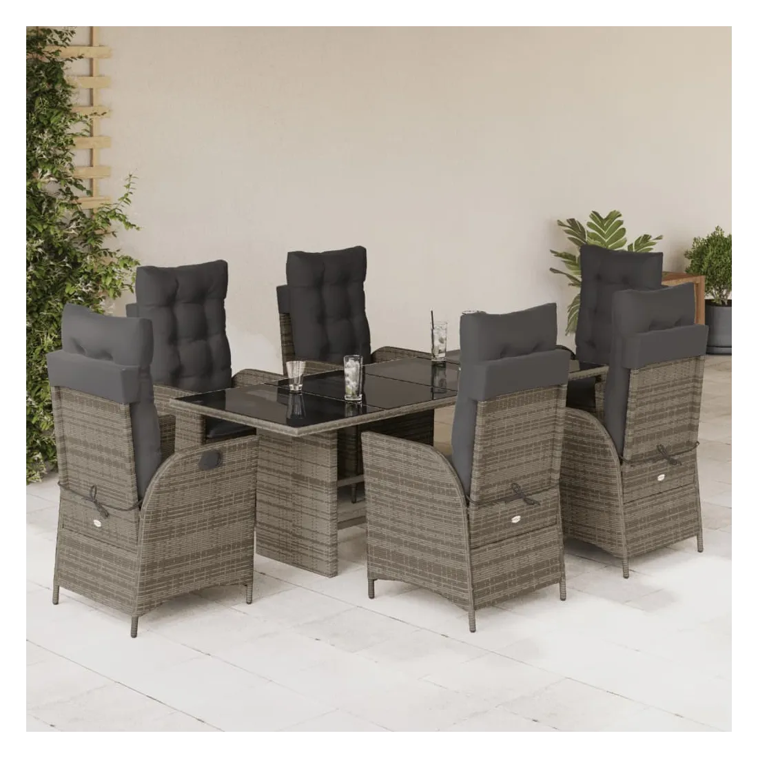 Cet ensemble de salle à manger de jardin est un excellent choix pour les repas en plein air ou pour vous détendre dans le jardin, dans l'arrière-cour ou sur la terrasse. Matériau durable : la résine tressée, également connue sous le nom de poly rotin, est un matériau synthétique solide et nécessitant peu d'entretien qui ressemble au rotin naturel. Il est léger, facile à nettoyer et couramment utilisé pour les meubles d'extérieur en raison de sa durabilité et de ses propriétés de résistance aux intempéries.Dossier réglable : ce siège de jardin est doté d'une poignée. Vous pouvez régler le dossier dans n'importe quelle position en tirant sur la poignée et le remettre rapidement dans sa position initiale.Expérience d'assise confortable : ce mobilier d'extérieur, doté de coussins épais, offre une expérience d'assise confortable.Housse amovible et lavable : ces coussins de siège sont dotés de housses amovibles pour un lavage et un entretien faciles. Les coussins de dossier ont un rabat à l'arrière pour une fixation facile aux dossiers.Dessus en verre : le dessus de la table d'extérieur est fabriqué en verre trempé solide et durable, ce qui le rend facile à nettoyer avec un chiffon humide et ajoute une touche d'élégance à votre espace extérieur. Bon à savoir : Pour que vos meubles d'extérieur restent beaux, nous vous recommandons de les protéger avec une housse imperméable.