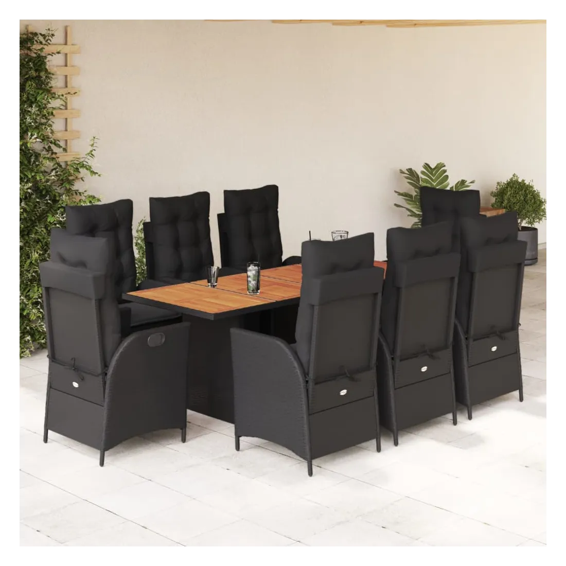 Cet ensemble de salle à manger de jardin est un excellent choix pour les repas en plein air ou pour vous détendre dans le jardin, dans l'arrière-cour ou sur la terrasse. Matériau durable : la résine tressée, également connue sous le nom de poly rotin, est un matériau synthétique solide et nécessitant peu d'entretien qui ressemble au rotin naturel. Il est léger, facile à nettoyer et couramment utilisé pour les meubles d'extérieur en raison de sa durabilité et de ses propriétés de résistance aux intempéries.Dossier réglable : ce siège de jardin est doté d'une poignée. Vous pouvez régler le dossier dans n'importe quelle position en tirant sur la poignée et le remettre rapidement dans sa position initiale.Expérience d'assise confortable : ce mobilier d'extérieur, doté de coussins épais, offre une expérience d'assise confortable.Housse amovible et lavable : ces coussins de siège sont dotés de housses amovibles pour un lavage et un entretien faciles. Les coussins de dossier ont un rabat à l'arrière pour une fixation facile aux dossiers.Dessus stable et facile à nettoyer : cette table de jardin a un dessus en bois d'acacia robuste, durable et facile à nettoyer avec un chiffon humide. Bon à savoir : Pour que vos meubles d'extérieur restent beaux, nous vous recommandons de les protéger avec une housse imperméable.