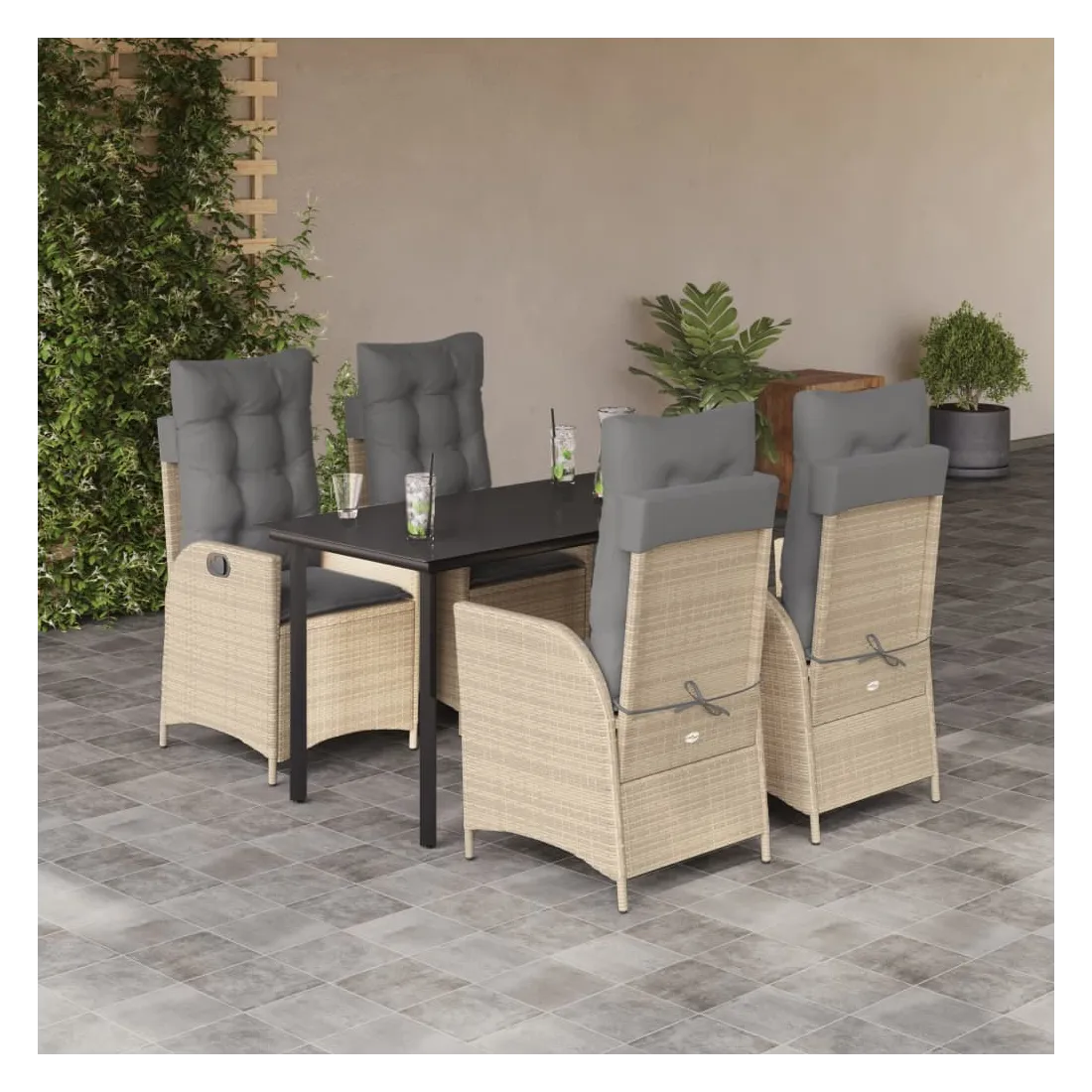 Ensemble à manger de jardin avec coussins 5pcs Beige poly rotin