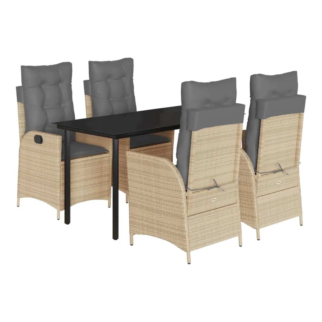 vidaXLCet ensemble de salle à manger de jardin est un excellent choix pour les repas en plein air ou pour vous détendre dans le jardin, dans l'arrière-cour ou sur la terrasse. Matériau durable : la résine tressée, également connue sous le nom de poly rotin, est un matériau synthétique solide et nécessitant peu d'entretien qui ressemble au rotin naturel. Il est léger, facile à nettoyer et couramment utilisé pour les meubles d'extérieur en raison de sa durabilité et de ses propriétés de résistance aux intempéries.Dossier réglable : ce siège de jardin est doté d'une poignée. Vous pouvez régler le dossier dans n'importe quelle position en tirant sur la poignée et le remettre rapidement dans sa position initiale.Expérience d'assise confortable : ce mobilier d'extérieur, doté de coussins épais, offre une expérience d'assise confortable.Housse amovible et lavable : ces coussins de siège sont dotés de housses amovibles pour un lavage et un entretien faciles. Les coussins de dossier ont un rabat à l'arrière pour une fixation facile aux dossiers.Dessus en verre : le dessus de la table d'extérieur est fabriqué en verre trempé solide et durable, ce qui le rend facile à nettoyer avec un chiffon humide et ajoute une touche d'élégance à votre espace extérieur. Bon à savoir : Pour que vos meubles d'extérieur restent beaux, nous vous recommandons de les protéger avec une housse imperméable.