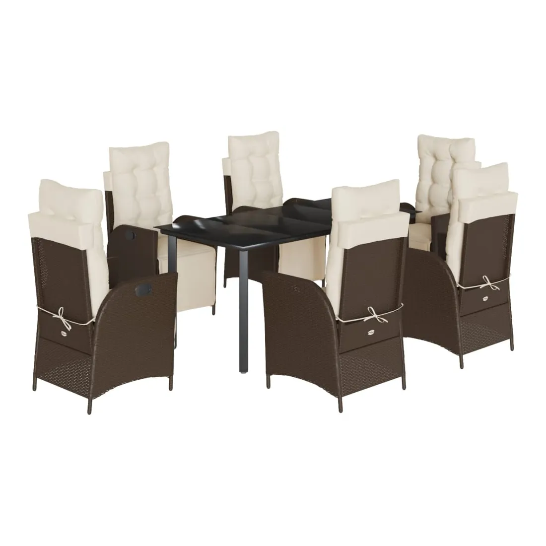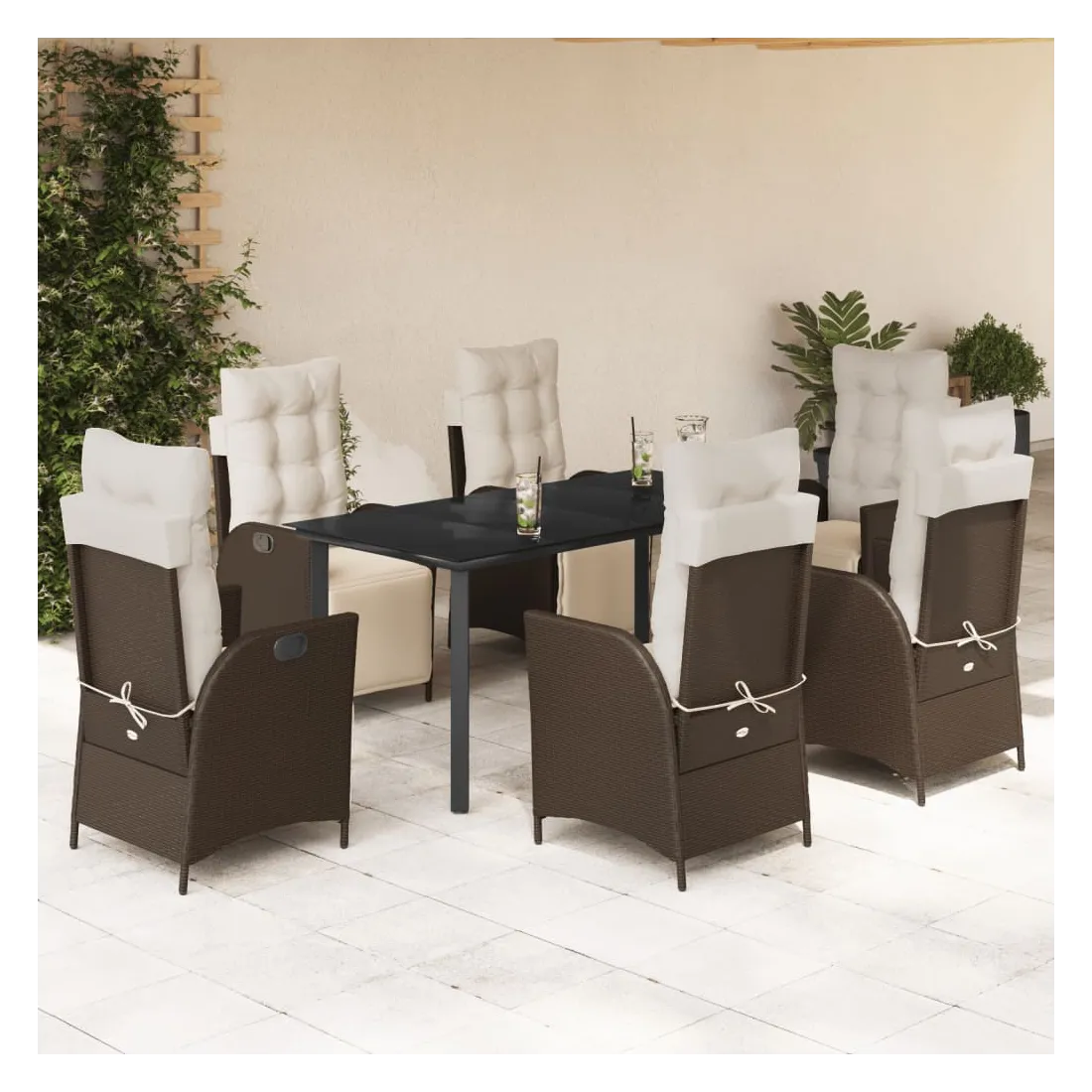 Cet ensemble de salle à manger de jardin est un excellent choix pour les repas en plein air ou pour vous détendre dans le jardin, l'arrière-cour ou le patio. Matériau durable : la résine tressée, également connue sous le nom de poly rotin, est un matériau synthétique solide et nécessitant peu d'entretien qui ressemble au rotin naturel. Il est léger, facile à nettoyer et couramment utilisé pour les meubles d'extérieur en raison de sa durabilité et de ses propriétés de résistance aux intempéries.Dossier et repose-pied réglables : ce siège de jardin est doté d'une poignée. Vous pouvez régler le dossier et le repose-pied dans n'importe quelle position en tirant sur la poignée, et les remettre rapidement dans leur position initiale.Expérience d'assise confortable : ce mobilier d'extérieur, doté de coussins épais, offre une expérience d'assise confortable.Housse amovible et lavable : ces coussins de siège sont dotés de housses amovibles pour un lavage et un entretien faciles. Les coussins de dossier ont un rabat à l'arrière pour une fixation facile aux dossiers.Dessus en verre : le dessus de la table d'extérieur est fabriqué en verre trempé solide et durable, ce qui le rend facile à nettoyer avec un chiffon humide et ajoute une touche d'élégance à votre espace extérieur. Bon à savoir :Pour que vos meubles d'extérieur restent beaux, nous vous recommandons de les protéger avec une housse imperméable.