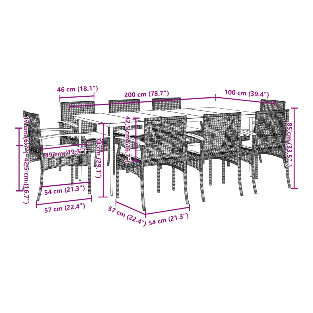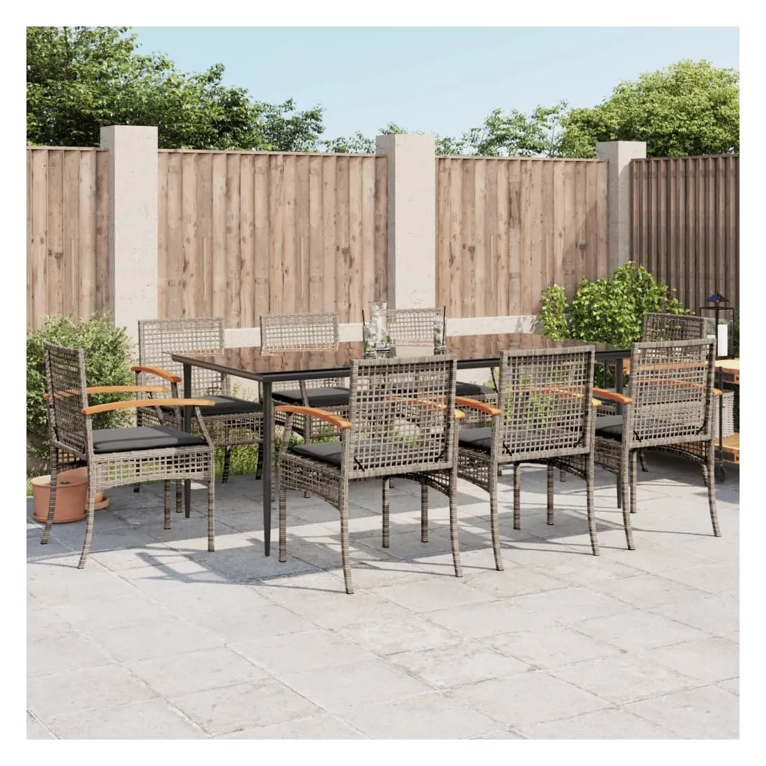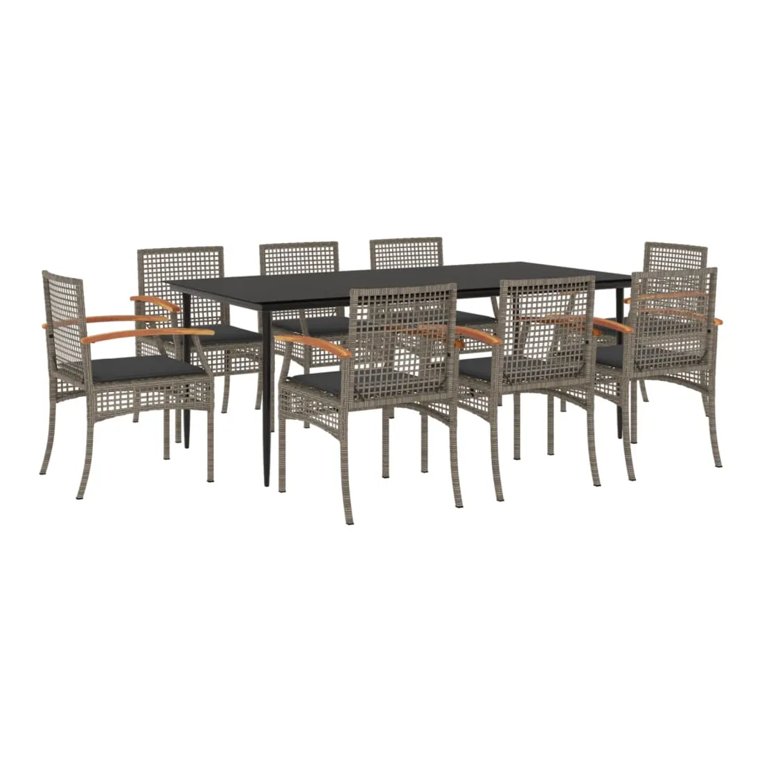 Ensemble à manger de jardin 9 pcs coussins gris résine tressée