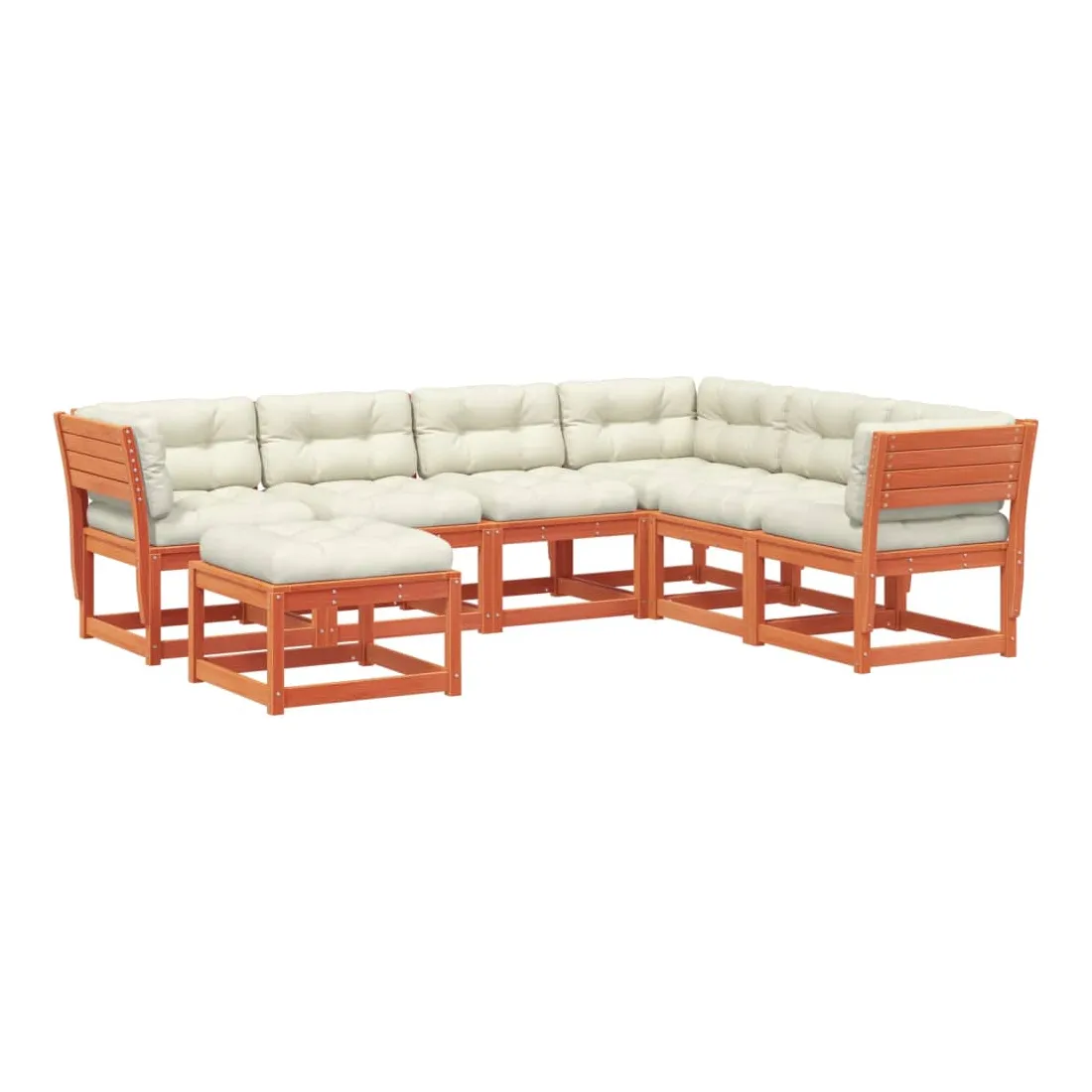 Salon de jardin 7 pcs avec coussins cire marron bois pin massif