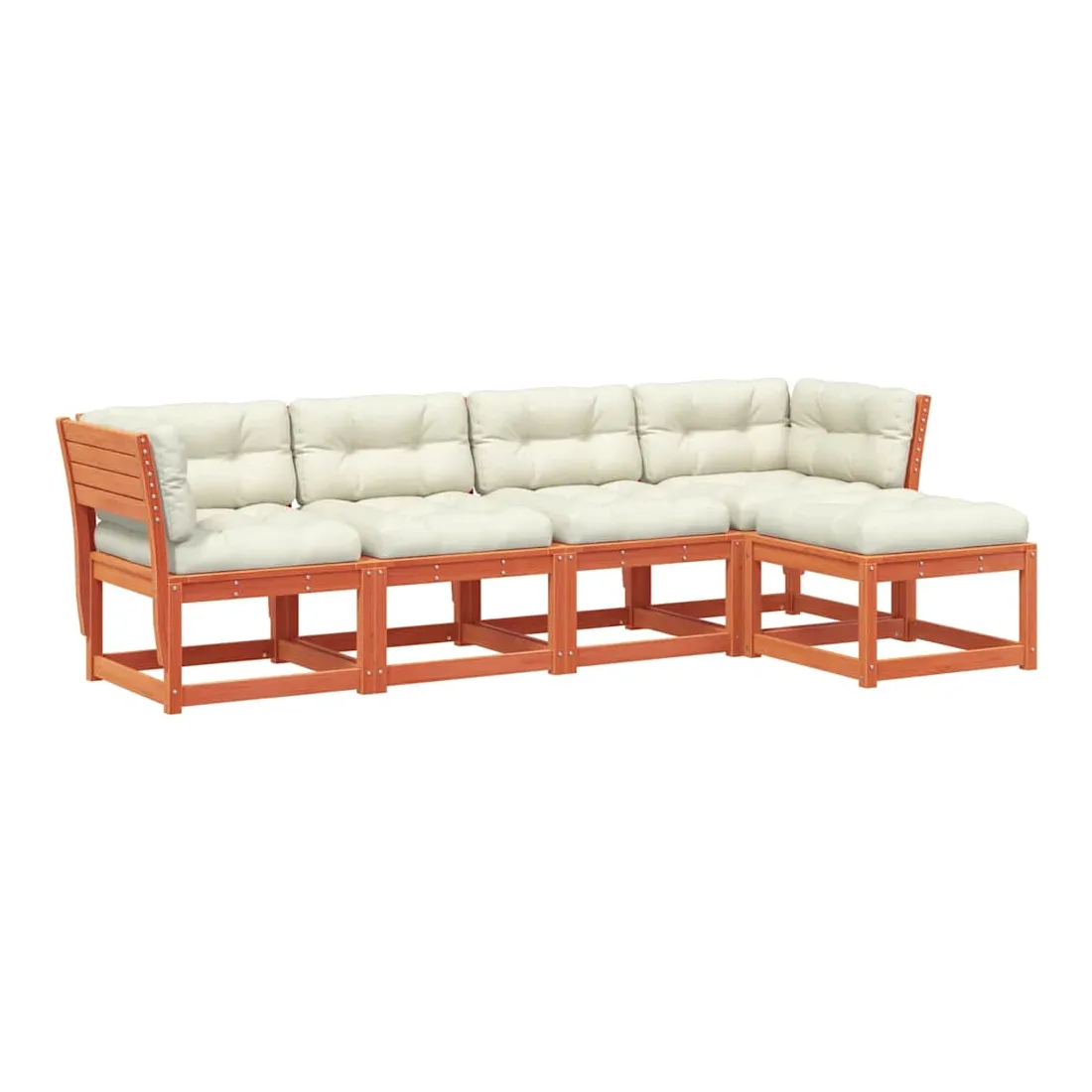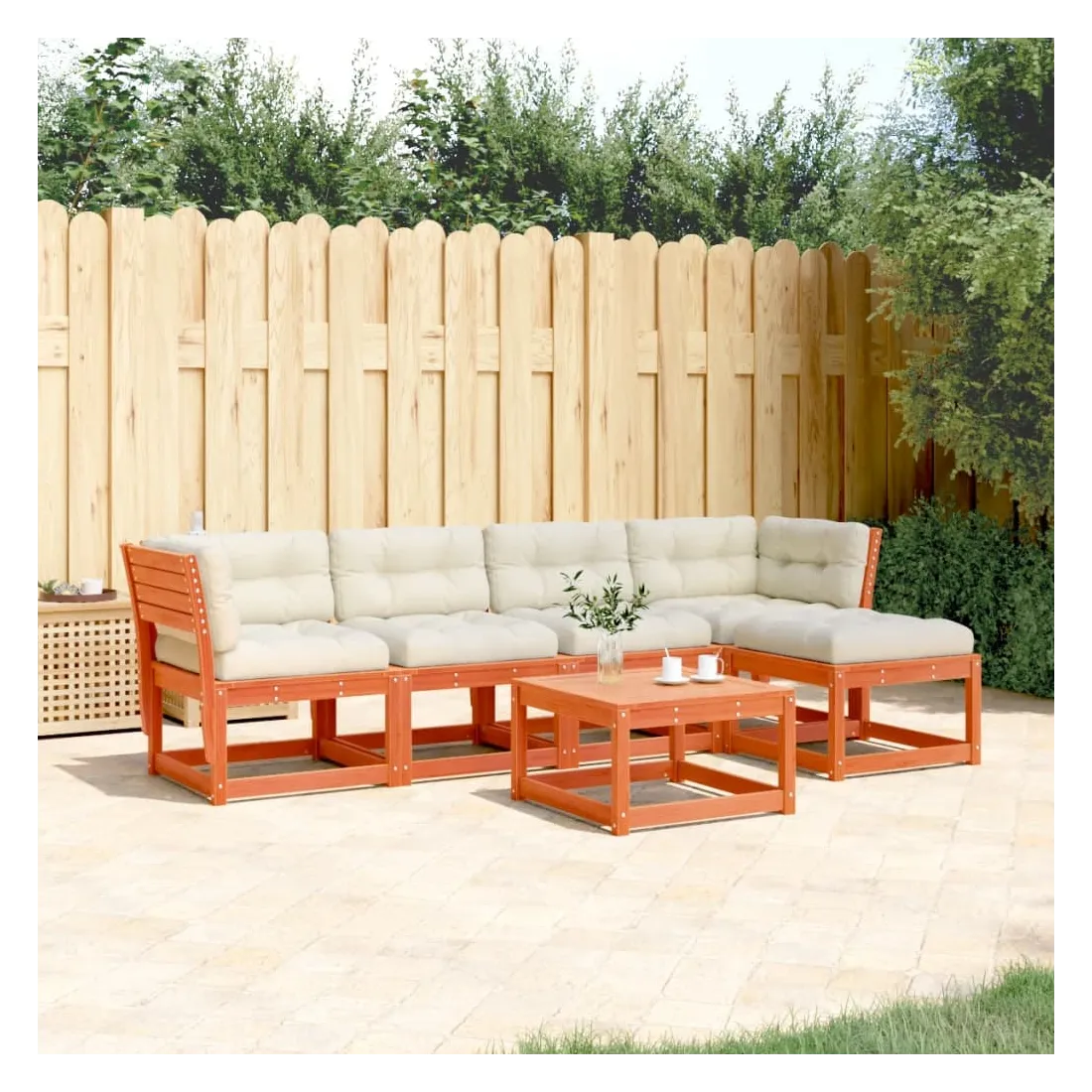 Cet ensemble de canapés de jardin est le complément parfait de votre arrière-cour, terrasse ou patio, offrant un espace confortable et accueillant pour discuter avec la famille et les amis ou simplement se détendre et profiter de l'extérieur. Bois de pin massif : le bois de pin massif est un matériau naturel magnifique. Le bois de pin a un grain droit et les nœuds donnent au matériau son aspect caractéristique et rustique.Expérience d'assise confortable : ce mobilier d'extérieur, doté de dossiers et de coussin épais rembourré, offre une expérience d'assise confortable.Conception à lattes : la conception à lattes du canapé d'extérieur empêche efficacement l'eau de s'accumuler, ce qui garantit que l'assise reste sèche et exempte de tout risque de pourriture.Conception modulaire : cet ensemble de meubles d'extérieur a une conception modulaire, ce qui le rend complètement flexible et facile à déplacer, afin que vous puissiez créer un agencement de meubles d'extérieur personnalisé. Bon à savoir :Pour que vos meubles d'extérieur restent beaux, nous vous recommandons de les protéger avec une housse imperméable.