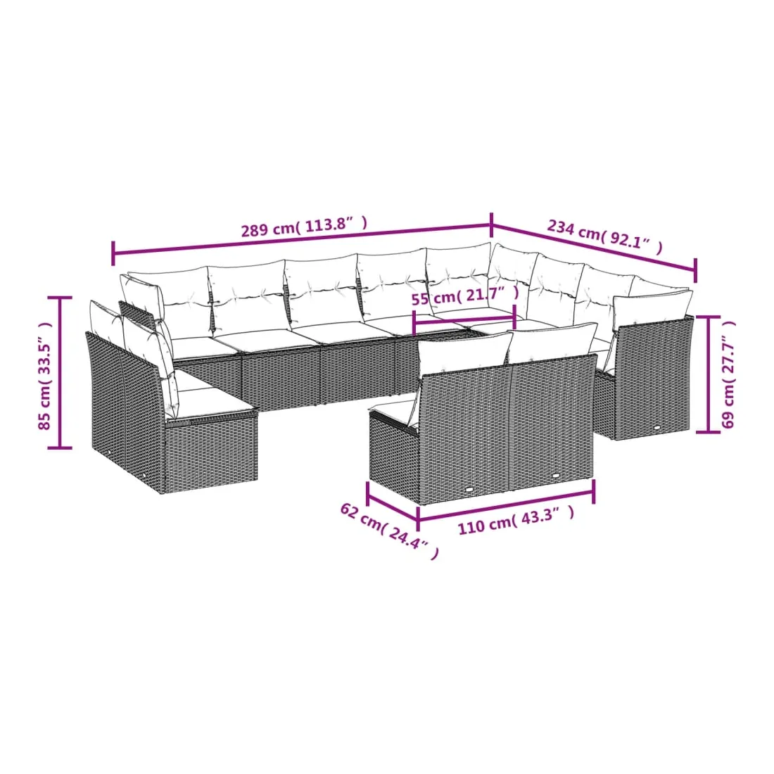 Cet ensemble de canapés de jardin est le complément parfait de votre arrière-cour, terrasse ou patio, offrant un espace confortable et accueillant pour discuter avec la famille et les amis ou simplement se détendre et profiter de l'extérieur. Matériau durable : la résine tressée, également connue sous le nom de poly rotin, est un matériau synthétique solide et nécessitant peu d'entretien qui ressemble au rotin naturel. Il est léger, facile à nettoyer et couramment utilisé pour les meubles d'extérieur en raison de sa durabilité et de ses propriétés de résistance aux intempéries.Expérience d'assise confortable : ce mobilier d'extérieur, doté de coussins épais, offre une expérience d'assise confortable.Housse amovible et lavable : ces coussins de siège sont dotés de housses amovibles pour un lavage et un entretien faciles.Conception modulaire : cet ensemble de meubles d'extérieur a une conception modulaire, ce qui le rend complètement flexible et facile à déplacer, afin que vous puissiez créer un agencement de meubles d'extérieur personnalisé. Bon à savoir :Pour que vos meubles d'extérieur restent beaux, nous vous recommandons de les protéger avec une housse imperméable.