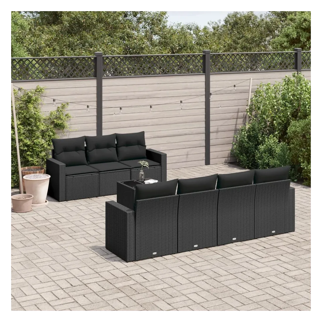 Cet ensemble de canapés de jardin est le complément parfait de votre arrière-cour, terrasse ou patio, offrant un espace confortable et accueillant pour discuter avec la famille et les amis ou simplement se détendre et profiter de l'extérieur. Matériau durable : la résine tressée, également connue sous le nom de poly rotin, est un matériau synthétique solide et nécessitant peu d'entretien qui ressemble au rotin naturel. Il est léger, facile à nettoyer et couramment utilisé pour les meubles d'extérieur en raison de sa durabilité et de ses propriétés de résistance aux intempéries.Expérience d'assise confortable : ce mobilier d'extérieur, doté de coussins épais, offre une expérience d'assise confortable. Les larges accoudoirs offrent également un endroit pratique pour garder votre téléphone portable, vos tasses ou d'autres petits objets à portée de main.Housse amovible et lavable : ces coussins de siège sont dotés de housses amovibles pour un lavage et un entretien faciles.Dessus en verre : le dessus de la table d'extérieur est fabriqué en verre trempé solide et durable, ce qui le rend facile à nettoyer avec un chiffon humide et ajoute une touche d'élégance à votre espace extérieur.Conception modulaire : cet ensemble de meubles d'extérieur a une conception modulaire, ce qui le rend complètement flexible et facile à déplacer, afin que vous puissiez créer un agencement de meubles d'extérieur personnalisé. Bon à savoir :Pour que vos meubles d'extérieur restent beaux, nous vous recommandons de les protéger avec une housse imperméable.