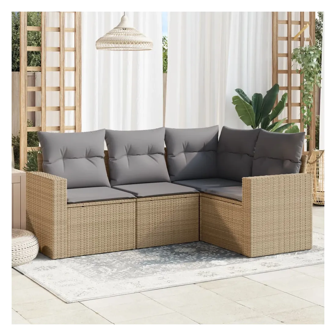 Cet ensemble de canapés de jardin est le complément parfait de votre arrière-cour, terrasse ou patio, offrant un espace confortable et accueillant pour discuter avec la famille et les amis ou simplement se détendre et profiter de l'extérieur. Matériau durable : la résine tressée, également connue sous le nom de poly rotin, est un matériau synthétique solide et nécessitant peu d'entretien qui ressemble au rotin naturel. Il est léger, facile à nettoyer et couramment utilisé pour les meubles d'extérieur en raison de sa durabilité et de ses propriétés de résistance aux intempéries.Expérience d'assise confortable : ce mobilier d'extérieur, doté de coussins épais, offre une expérience d'assise confortable. Les larges accoudoirs offrent également un endroit pratique pour garder votre téléphone portable, vos tasses ou d'autres petits objets à portée de main.Housse amovible et lavable : ces coussins de siège sont dotés de housses amovibles pour un lavage et un entretien faciles.Conception modulaire : cet ensemble de meubles d'extérieur a une conception modulaire, ce qui le rend complètement flexible et facile à déplacer, afin que vous puissiez créer un agencement de meubles d'extérieur personnalisé. Bon à savoir :Pour que vos meubles d'extérieur restent beaux, nous vous recommandons de les protéger avec une housse imperméable.