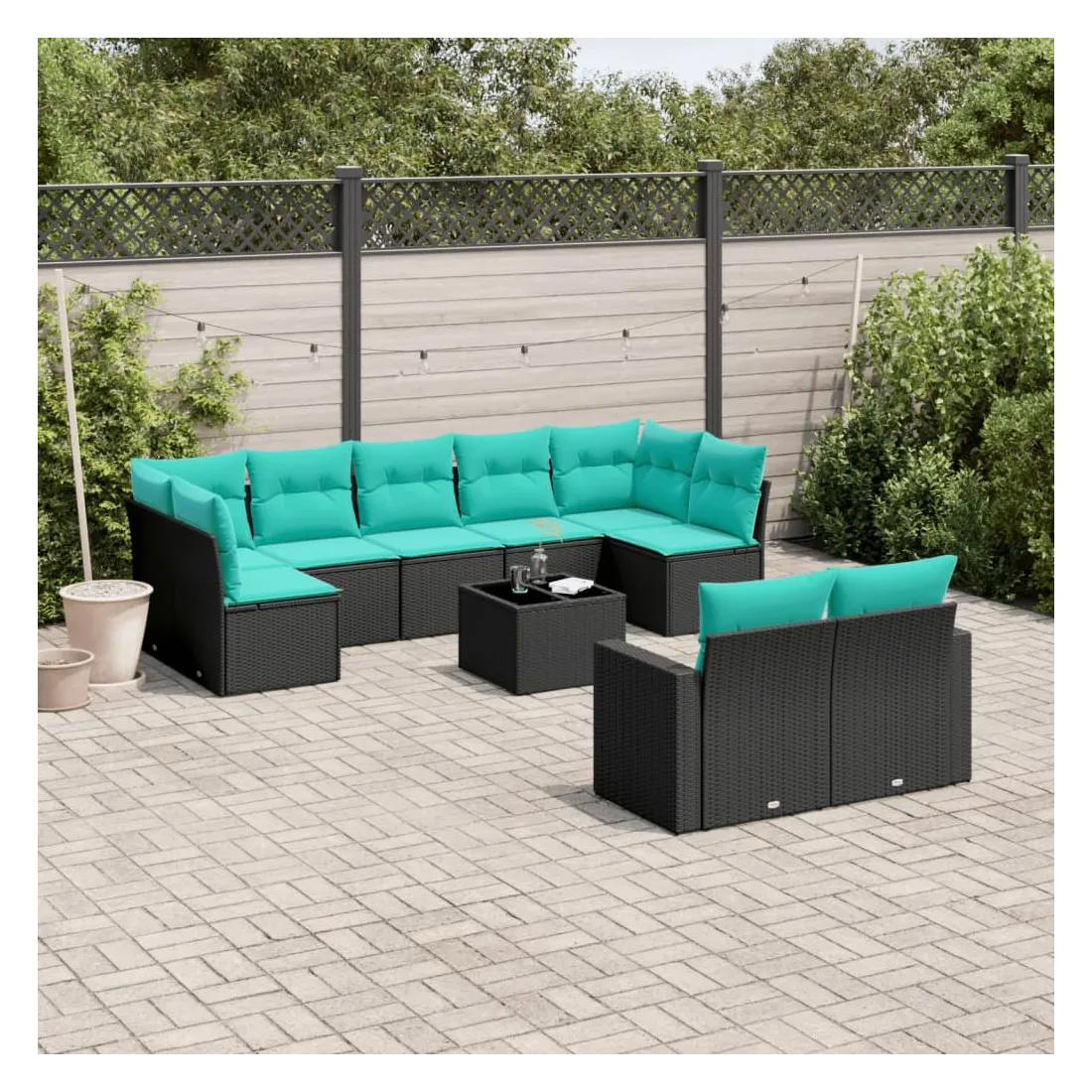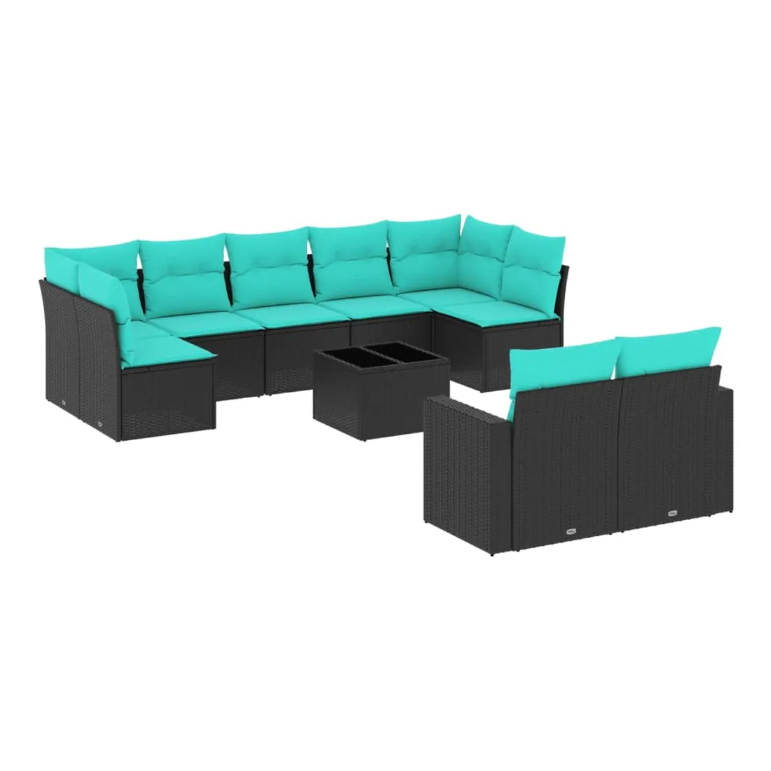 Salon de jardin 10 pcs avec coussins noir résine tressée