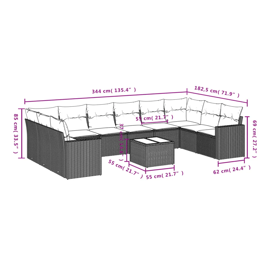 - Dimensions du coussin de siège : 55 x 55 x 3 cm (l x P x é)