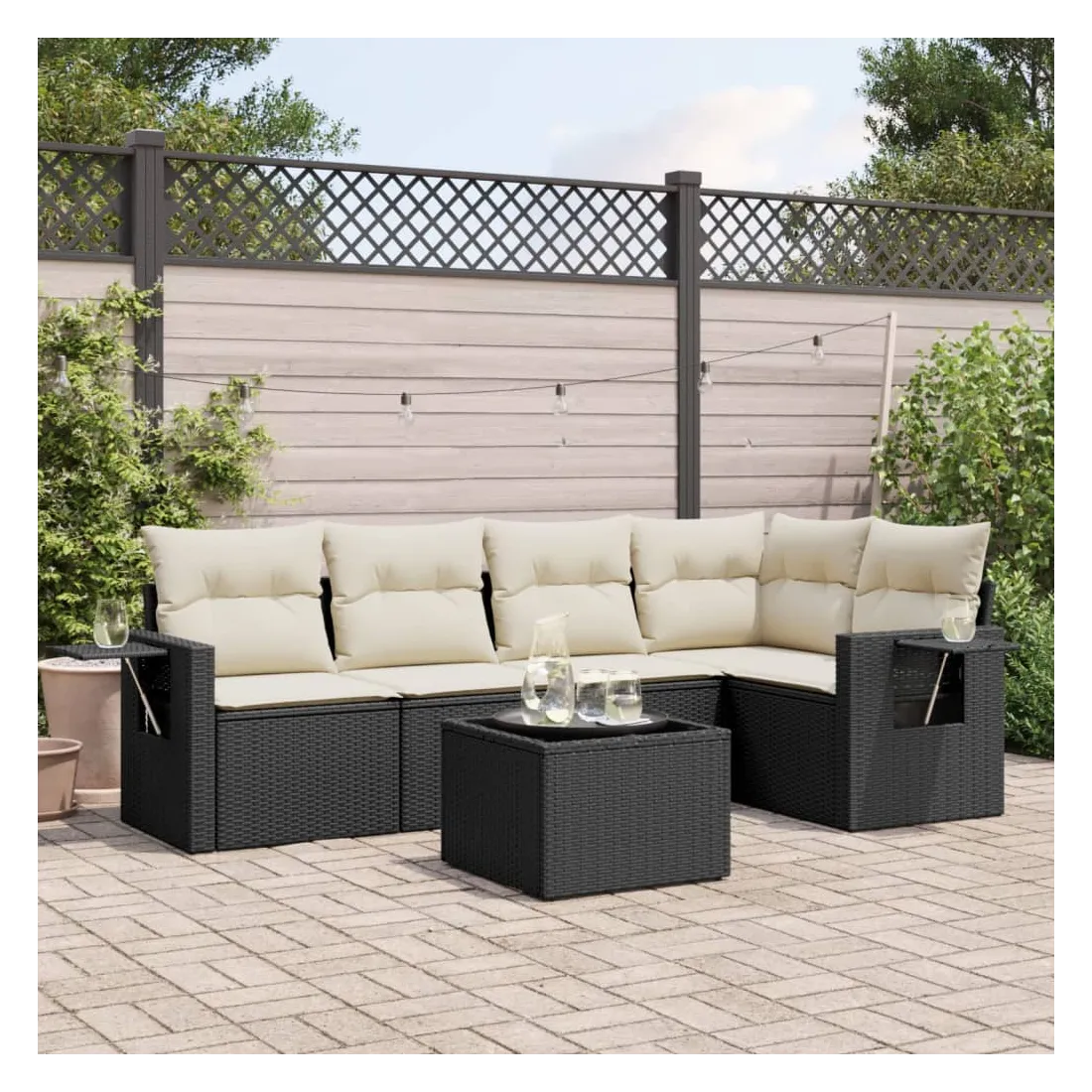 Cet ensemble de canapés de jardin est le complément parfait de votre arrière-cour, terrasse ou patio, offrant un espace confortable et accueillant pour discuter avec la famille et les amis ou simplement se détendre et profiter de l'extérieur. Matériau durable : la résine tressée, également connue sous le nom de poly rotin, est un matériau synthétique solide et nécessitant peu d'entretien qui ressemble au rotin naturel. Il est léger, facile à nettoyer et couramment utilisé pour les meubles d'extérieur en raison de sa durabilité et de ses propriétés de résistance aux intempéries.Dessus en verre : le dessus de la table d'extérieur est fabriqué en verre trempé solide et durable, ce qui le rend facile à nettoyer avec un chiffon humide et ajoute une touche d'élégance à votre espace extérieur. Table d'appoint pratique : ce mobilier d'extérieur comprend des tables d'appoint pliables avec un ressort à gaz sur les accoudoirs, offrant des endroits pratiques pour garder vos essentiels à portée de main. Expérience d'assise confortable : ce mobilier d'extérieur, doté de coussins épais, offre une expérience d'assise confortable.Conception modulaire : cet ensemble de meubles d'extérieur a une conception modulaire, ce qui le rend complètement flexible et facile à déplacer, afin que vous puissiez créer un agencement de meubles d'extérieur personnalisé. Bon à savoir :Pour que vos meubles d'extérieur restent beaux, nous vous recommandons de les protéger avec une housse imperméable.