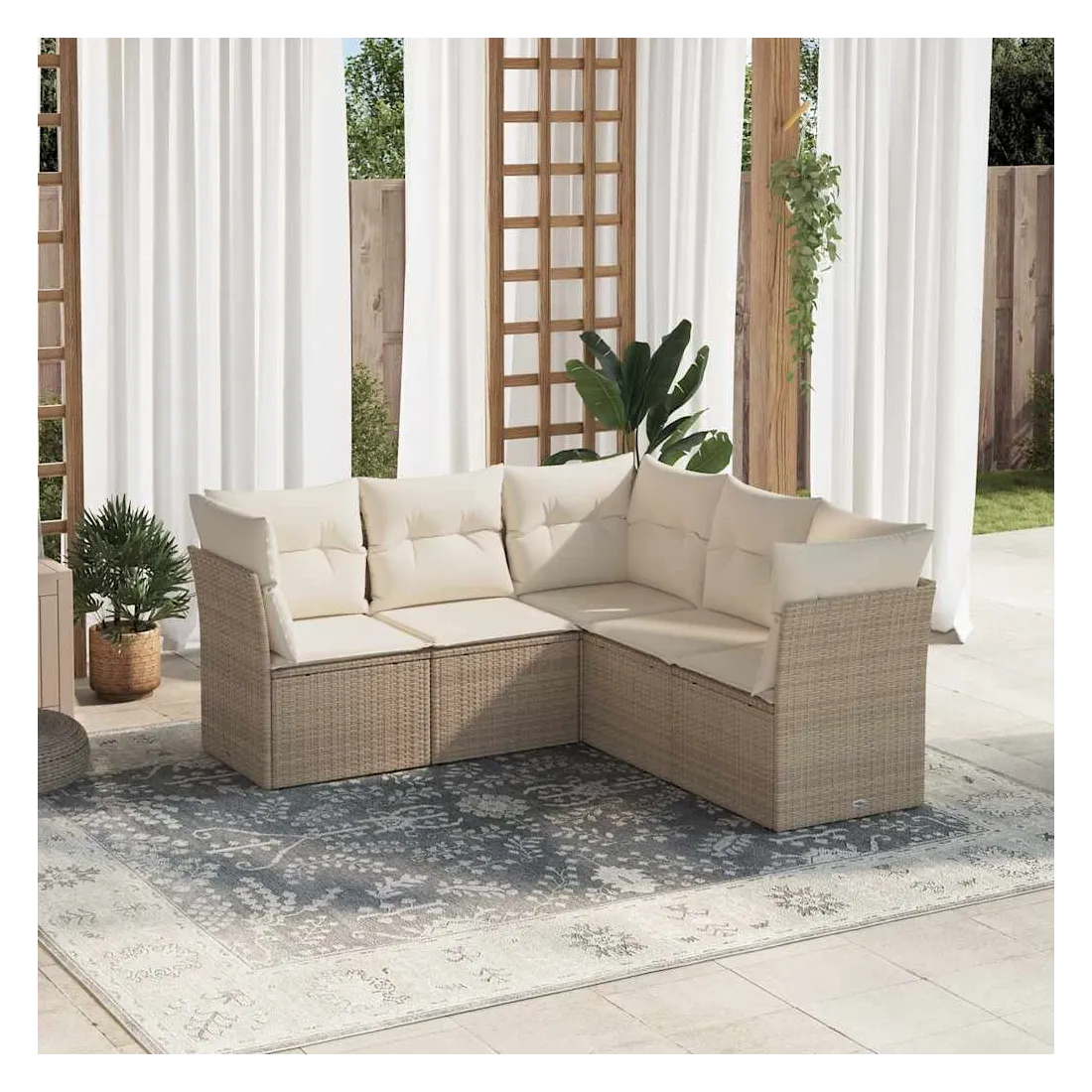 Cet ensemble de canapés de jardin est le complément parfait de votre arrière-cour, terrasse ou patio, offrant un espace confortable et accueillant pour discuter avec la famille et les amis ou simplement se détendre et profiter de l'extérieur. Matériau durable : la résine tressée, également connue sous le nom de poly rotin, est un matériau synthétique solide et nécessitant peu d'entretien qui ressemble au rotin naturel. Il est léger, facile à nettoyer et couramment utilisé pour les meubles d'extérieur en raison de sa durabilité et de ses propriétés de résistance aux intempéries.Expérience d'assise confortable : cet ensemble de meubles d'extérieur, doté de coussins épais, offre une expérience d'assise confortable.Housse amovible et lavable : ces coussins de siège sont dotés de housses amovibles pour un lavage et un entretien faciles.Conception modulaire : cet ensemble de meubles d'extérieur a une conception modulaire, ce qui le rend complètement flexible et facile à déplacer, afin que vous puissiez créer un agencement de meubles d'extérieur personnalisé. Bon à savoir :Pour que vos meubles d'extérieur restent beaux, nous vous recommandons de les protéger avec une housse imperméable.