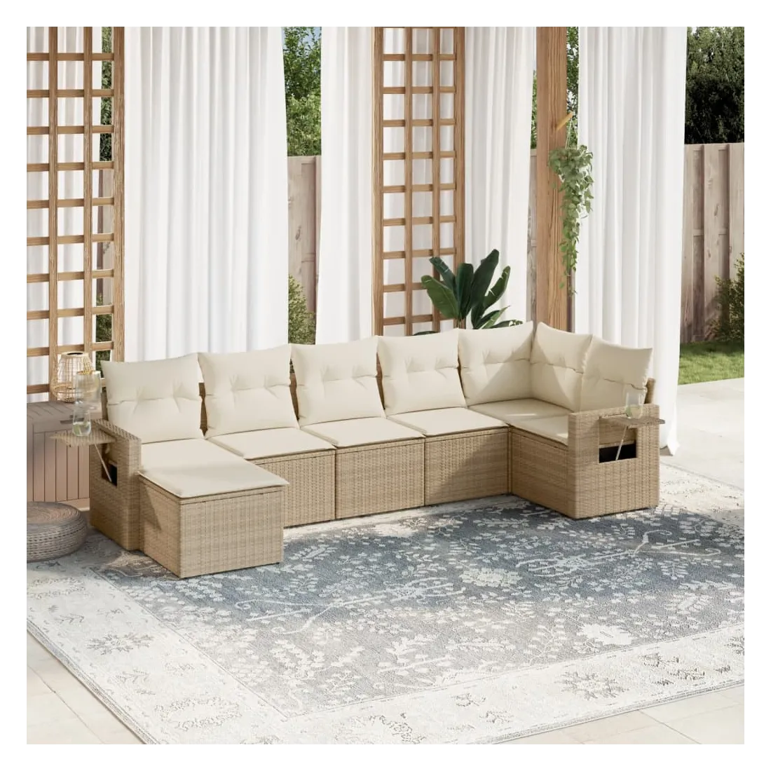 Salon de jardin avec coussins 7 pcs beige résine tressée