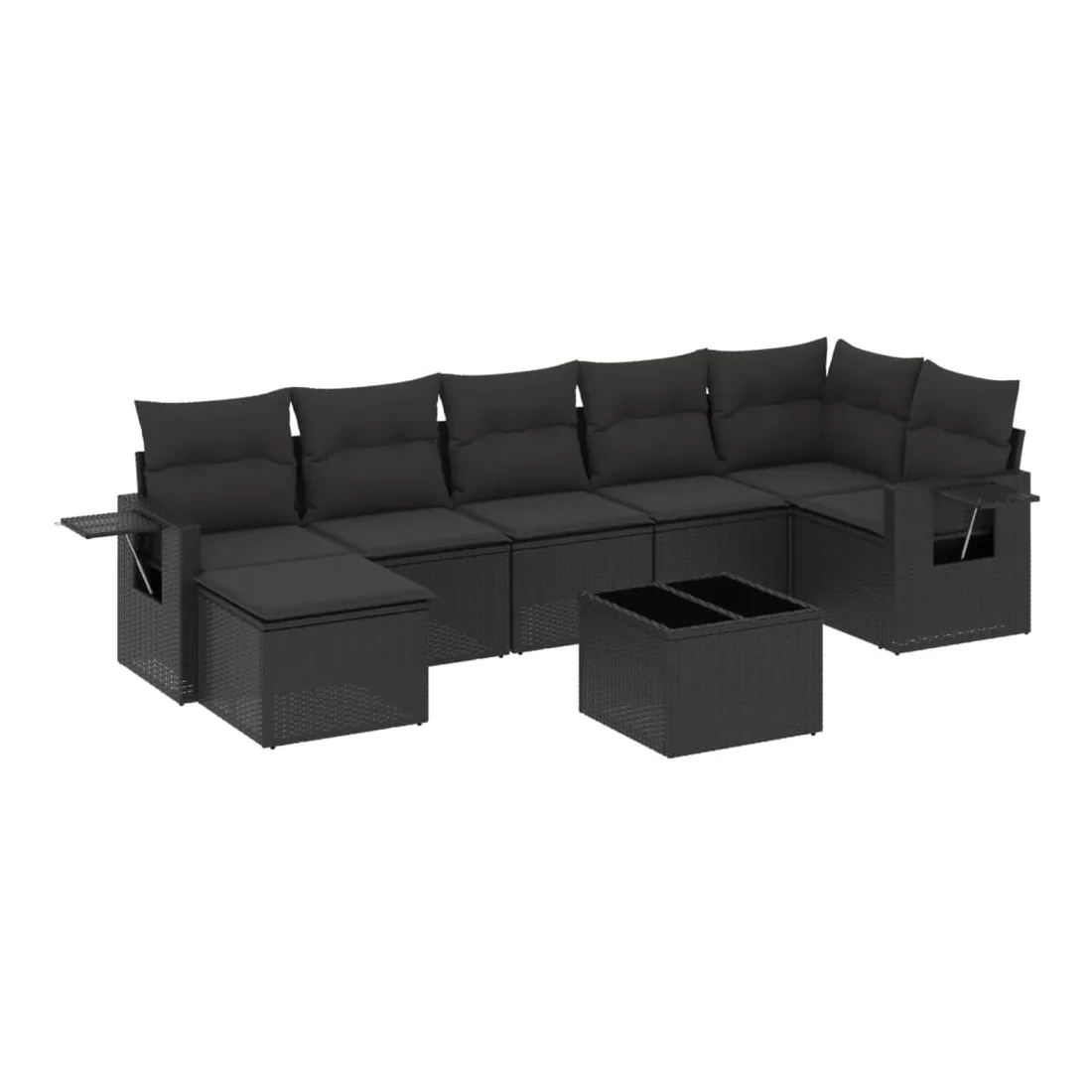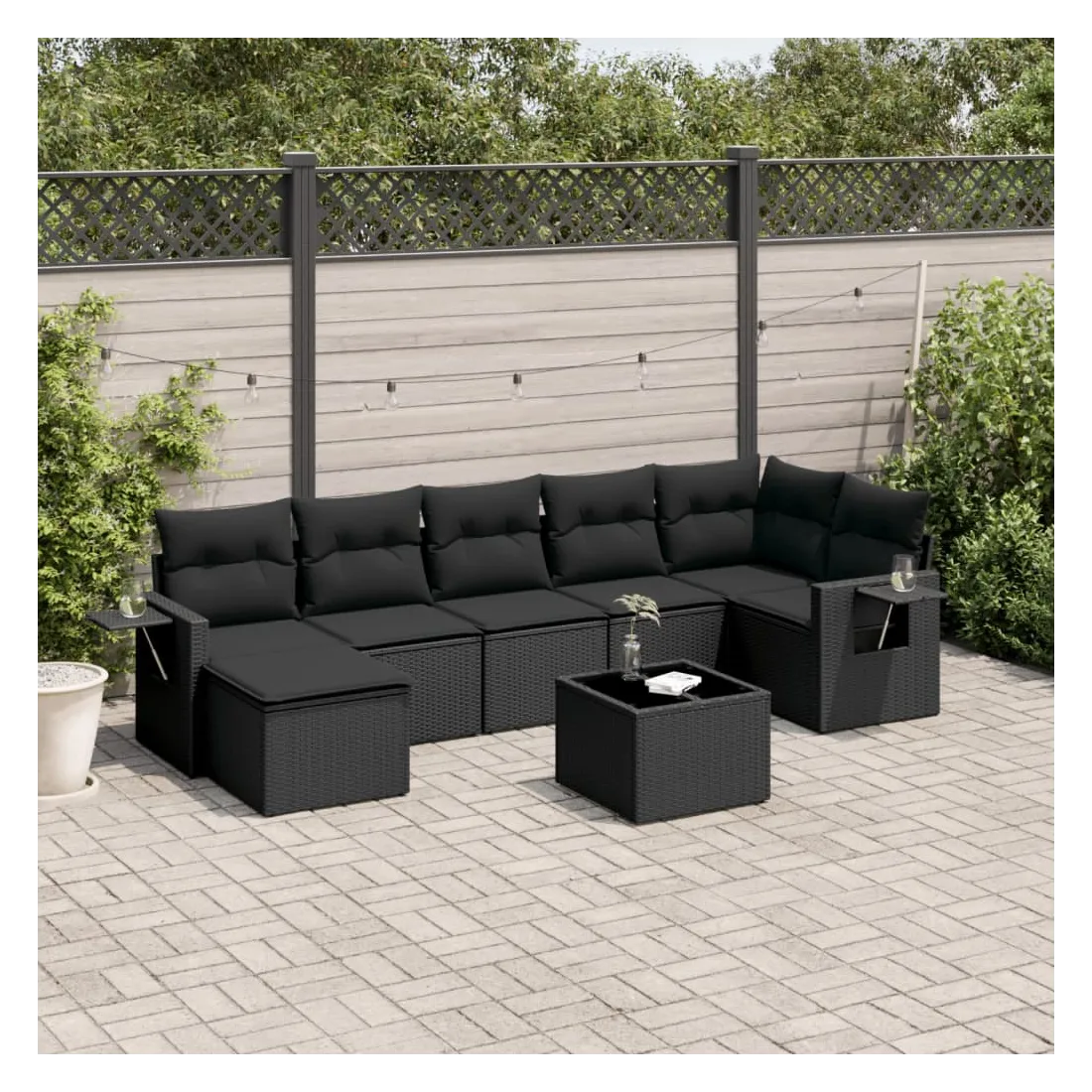 Cet ensemble de canapés de jardin est le complément parfait de votre arrière-cour, terrasse ou patio, offrant un espace confortable et accueillant pour discuter avec la famille et les amis ou simplement se détendre et profiter de l'extérieur. Matériau durable : la résine tressée, également connue sous le nom de poly rotin, est un matériau synthétique solide et nécessitant peu d'entretien qui ressemble au rotin naturel. Il est léger, facile à nettoyer et couramment utilisé pour les meubles d'extérieur en raison de sa durabilité et de ses propriétés de résistance aux intempéries.Dessus en verre : le dessus de la table d'extérieur est fabriqué en verre trempé solide et durable, ce qui le rend facile à nettoyer avec un chiffon humide et ajoute une touche d'élégance à votre espace extérieur. Table d'appoint pratique : ce mobilier d'extérieur comprend des tables d'appoint pliables avec un ressort à gaz sur les accoudoirs, offrant des endroits pratiques pour garder vos essentiels à portée de main. Expérience d'assise confortable : ce mobilier d'extérieur, doté de coussins épais, offre une expérience d'assise confortable.Conception modulaire : cet ensemble de meubles d'extérieur a une conception modulaire, ce qui le rend complètement flexible et facile à déplacer, afin que vous puissiez créer un agencement de meubles d'extérieur personnalisé. Bon à savoir :Pour que vos meubles d'extérieur restent beaux, nous vous recommandons de les protéger avec une housse imperméable.