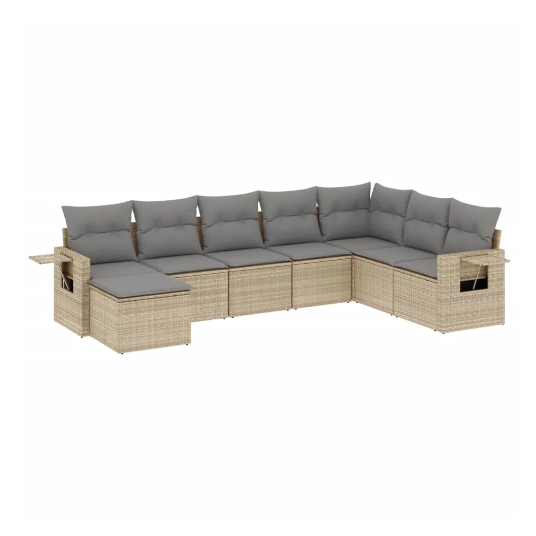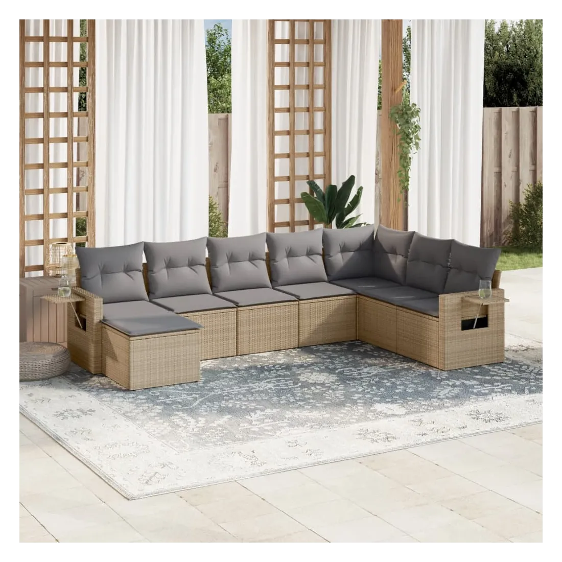 Cet ensemble de canapés de jardin est le complément parfait de votre arrière-cour, terrasse ou patio, offrant un espace confortable et accueillant pour discuter avec la famille et les amis ou simplement se détendre et profiter de l'extérieur. Matériau durable : la résine tressée, également connue sous le nom de poly rotin, est un matériau synthétique solide et nécessitant peu d'entretien qui ressemble au rotin naturel. Il est léger, facile à nettoyer et couramment utilisé pour les meubles d'extérieur en raison de sa durabilité et de ses propriétés de résistance aux intempéries. Table d'appoint pratique : ce mobilier d'extérieur comprend des tables d'appoint pliables avec un ressort à gaz sur les accoudoirs, offrant des endroits pratiques pour garder vos essentiels à portée de main. Expérience d'assise confortable : ce mobilier d'extérieur, doté de coussins épais, offre une expérience d'assise confortable. Housse amovible et lavable : ces coussins de siège sont dotés de housses amovibles pour un lavage et un entretien faciles.Conception modulaire : cet ensemble de meubles d'extérieur a une conception modulaire, ce qui le rend complètement flexible et facile à déplacer, afin que vous puissiez créer un agencement de meubles d'extérieur personnalisé. Bon à savoir :Pour que vos meubles d'extérieur restent beaux, nous vous recommandons de les protéger avec une housse imperméable.