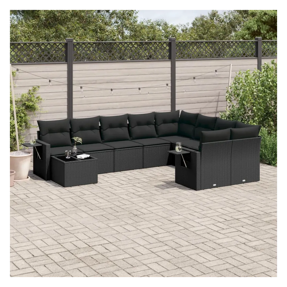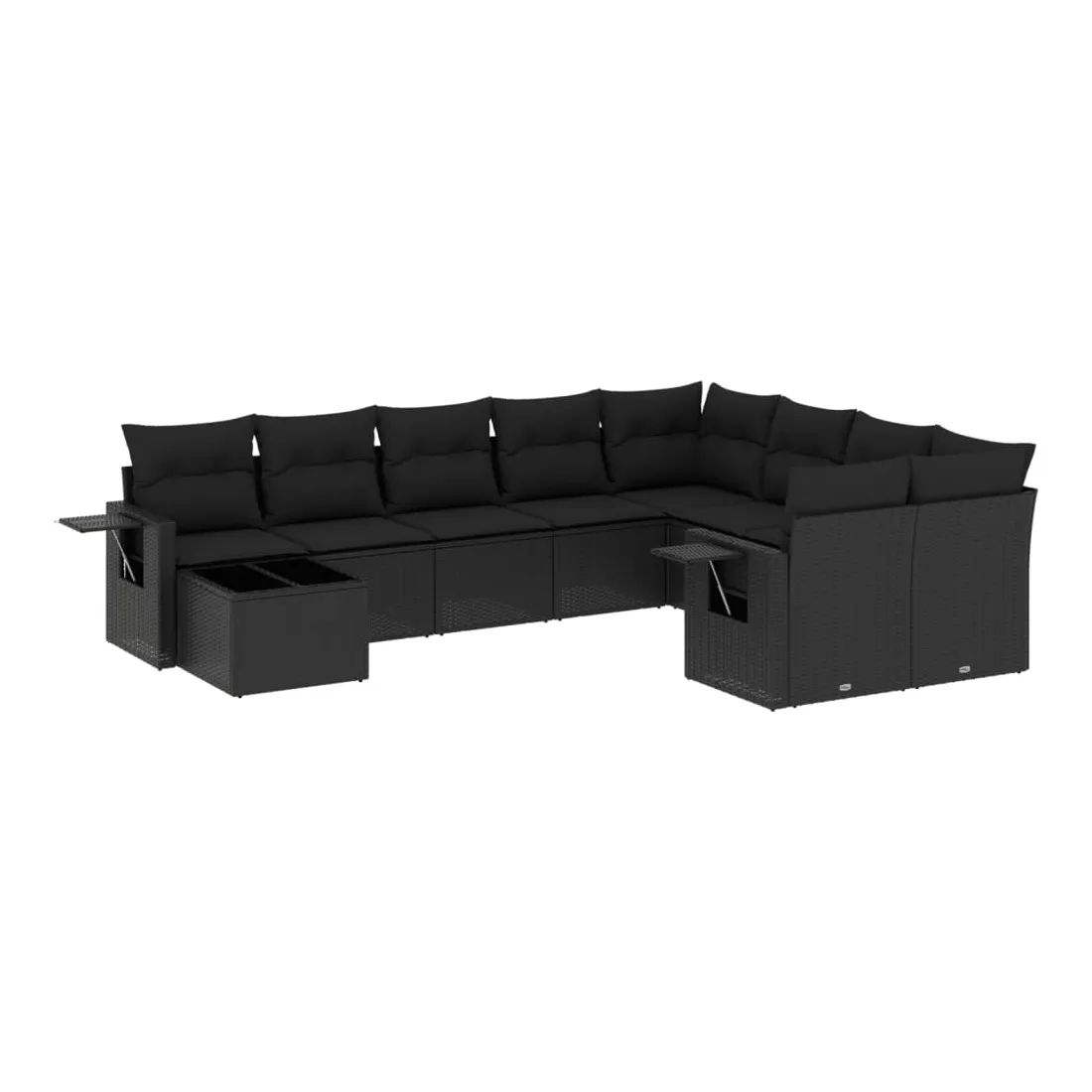 Salon de jardin 10 pcs avec coussins noir résine tressée
