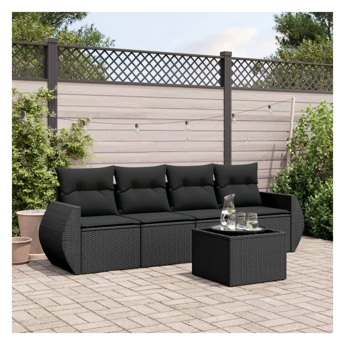 Cet ensemble de canapés de jardin est le complément parfait de votre arrière-cour, terrasse ou patio, offrant un espace confortable et accueillant pour discuter avec la famille et les amis ou simplement se détendre et profiter de l'extérieur. Matériau durable : la résine tressée, également connue sous le nom de poly rotin, est un matériau synthétique solide et nécessitant peu d'entretien qui ressemble au rotin naturel. Il est léger, facile à nettoyer et couramment utilisé pour les meubles d'extérieur en raison de sa durabilité et de ses propriétés de résistance aux intempéries.Dessus en verre : le dessus de la table d'extérieur est fabriqué en verre trempé solide et durable, ce qui le rend facile à nettoyer avec un chiffon humide et ajoute une touche d'élégance à votre espace extérieur. Expérience d'assise confortable : ce mobilier d'extérieur, doté de coussins épais, offre une expérience d'assise confortable. Housse amovible et lavable : ces coussins de siège sont dotés de housses amovibles pour un lavage et un entretien faciles.Conception modulaire : cet ensemble de meubles d'extérieur a une conception modulaire, ce qui le rend complètement flexible et facile à déplacer, afin que vous puissiez créer un agencement de meubles d'extérieur personnalisé. Bon à savoir :Pour que vos meubles d'extérieur restent beaux, nous vous recommandons de les protéger avec une housse imperméable.