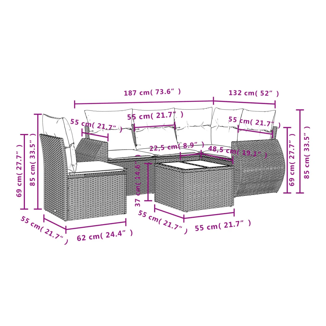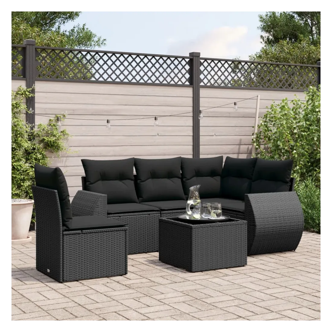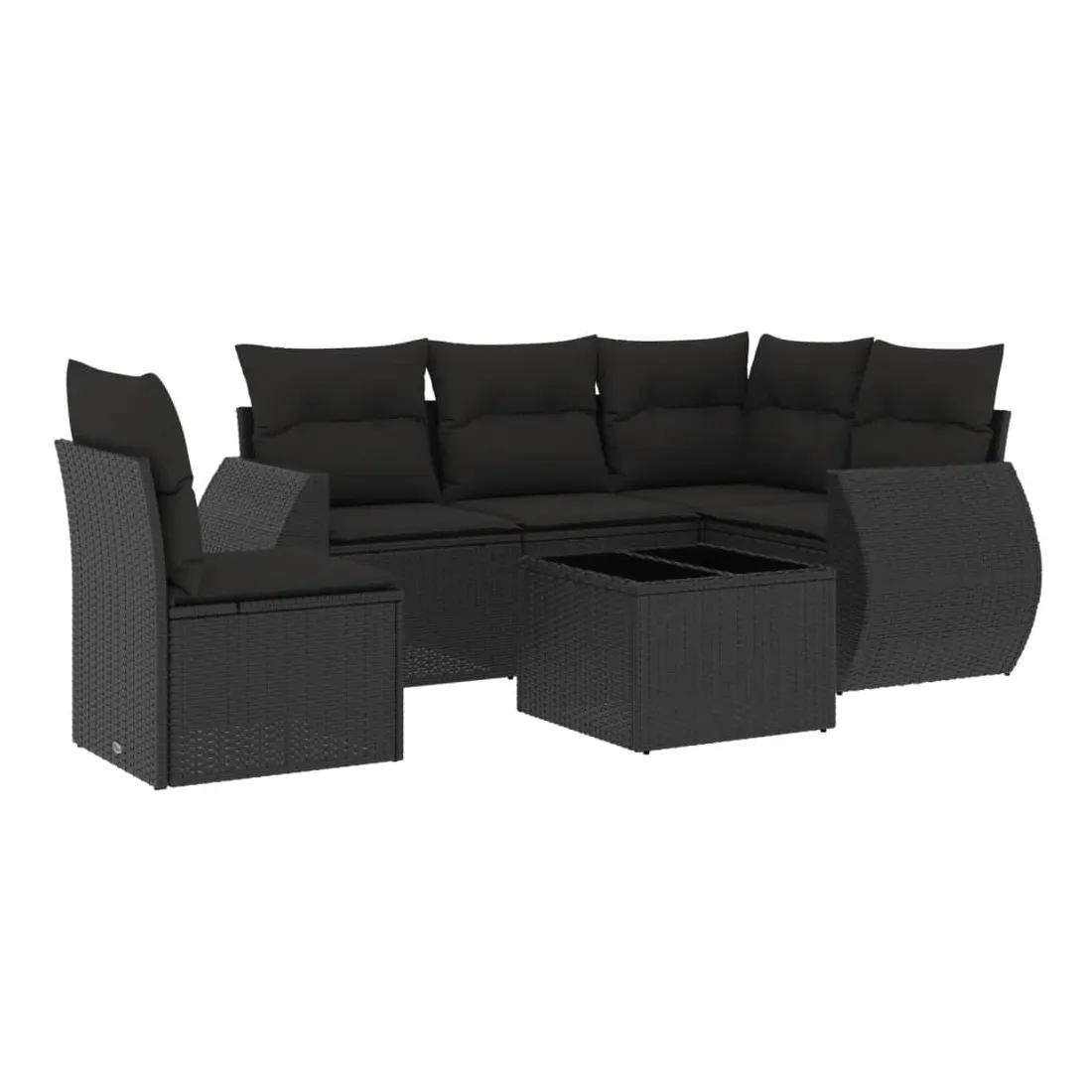 Salon de jardin 6 pcs avec coussins noir résine tressée