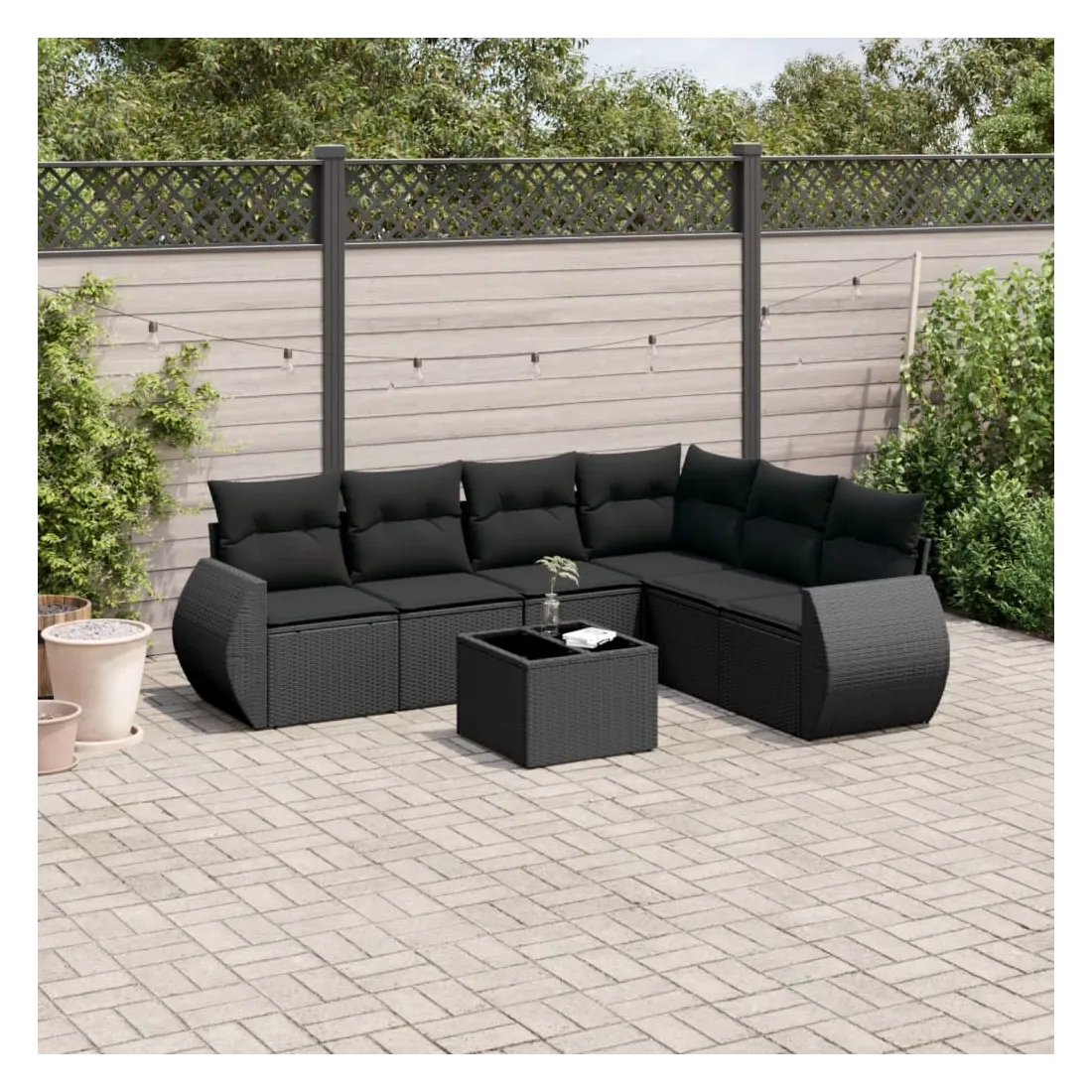 Cet ensemble de canapés de jardin est le complément parfait de votre arrière-cour, terrasse ou patio, offrant un espace confortable et accueillant pour discuter avec la famille et les amis ou simplement se détendre et profiter de l'extérieur. Matériau durable : la résine tressée, également connue sous le nom de poly rotin, est un matériau synthétique solide et nécessitant peu d'entretien qui ressemble au rotin naturel. Il est léger, facile à nettoyer et couramment utilisé pour les meubles d'extérieur en raison de sa durabilité et de ses propriétés de résistance aux intempéries.Dessus en verre : le dessus de la table d'extérieur est fabriqué en verre trempé solide et durable, ce qui le rend facile à nettoyer avec un chiffon humide et ajoute une touche d'élégance à votre espace extérieur. Expérience d'assise confortable : ce mobilier d'extérieur, doté de coussins épais, offre une expérience d'assise confortable.Housse amovible et lavable : ces coussins de siège sont dotés de housses amovibles pour un lavage et un entretien faciles.Conception modulaire : cet ensemble de meubles d'extérieur a une conception modulaire, ce qui le rend complètement flexible et facile à déplacer, afin que vous puissiez créer un agencement de meubles d'extérieur personnalisé. Bon à savoir :Pour que vos meubles d'extérieur restent beaux, nous vous recommandons de les protéger avec une housse imperméable.