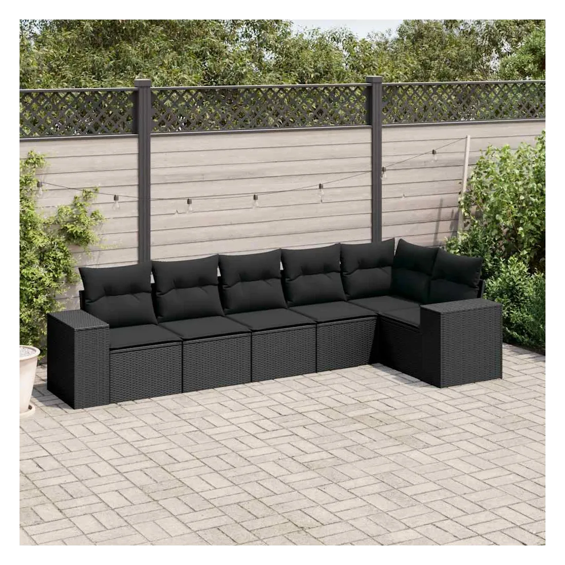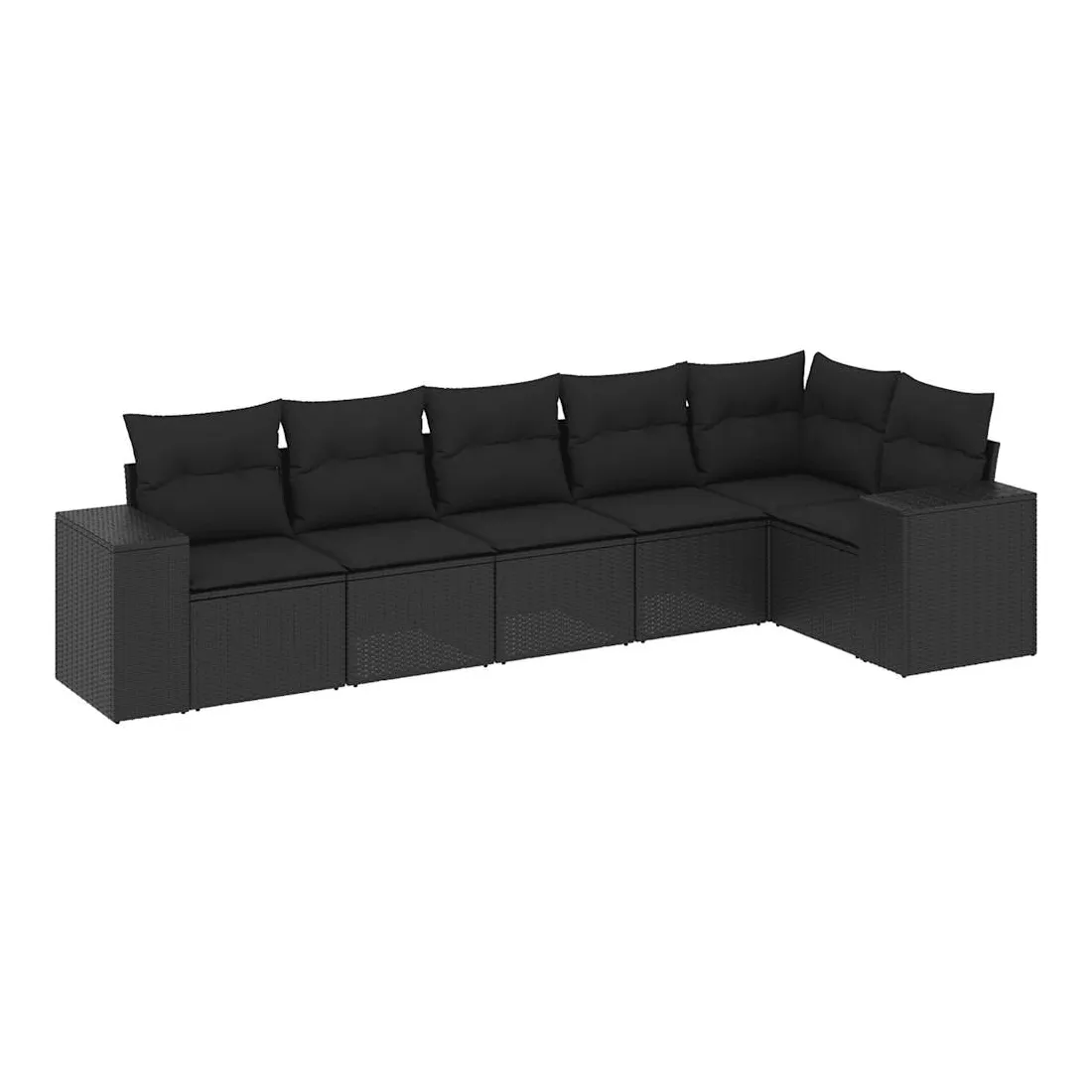 Salon de jardin 6 pcs avec coussins noir résine tressée