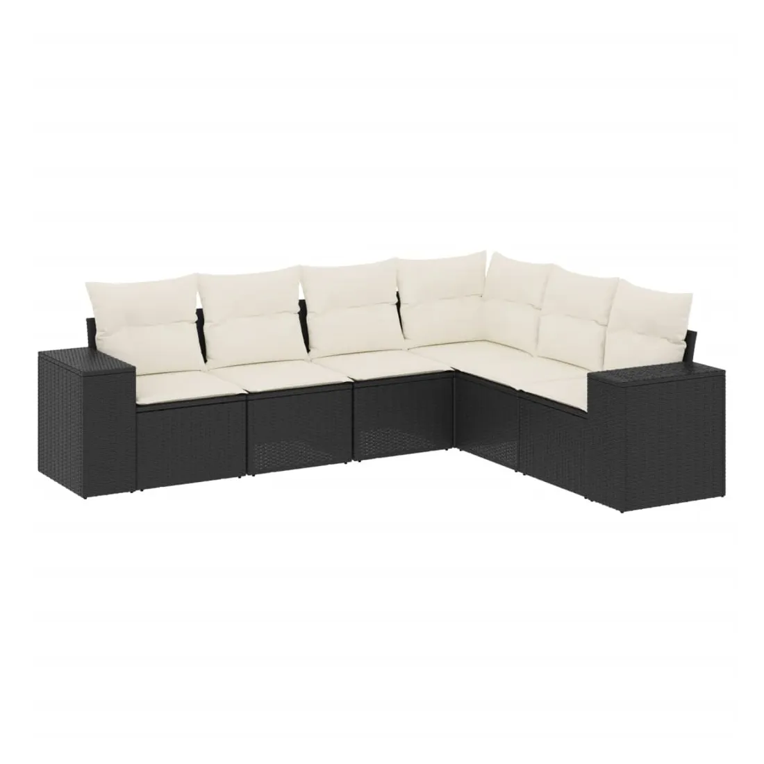Salon de jardin 6 pcs avec coussins noir résine tressée
