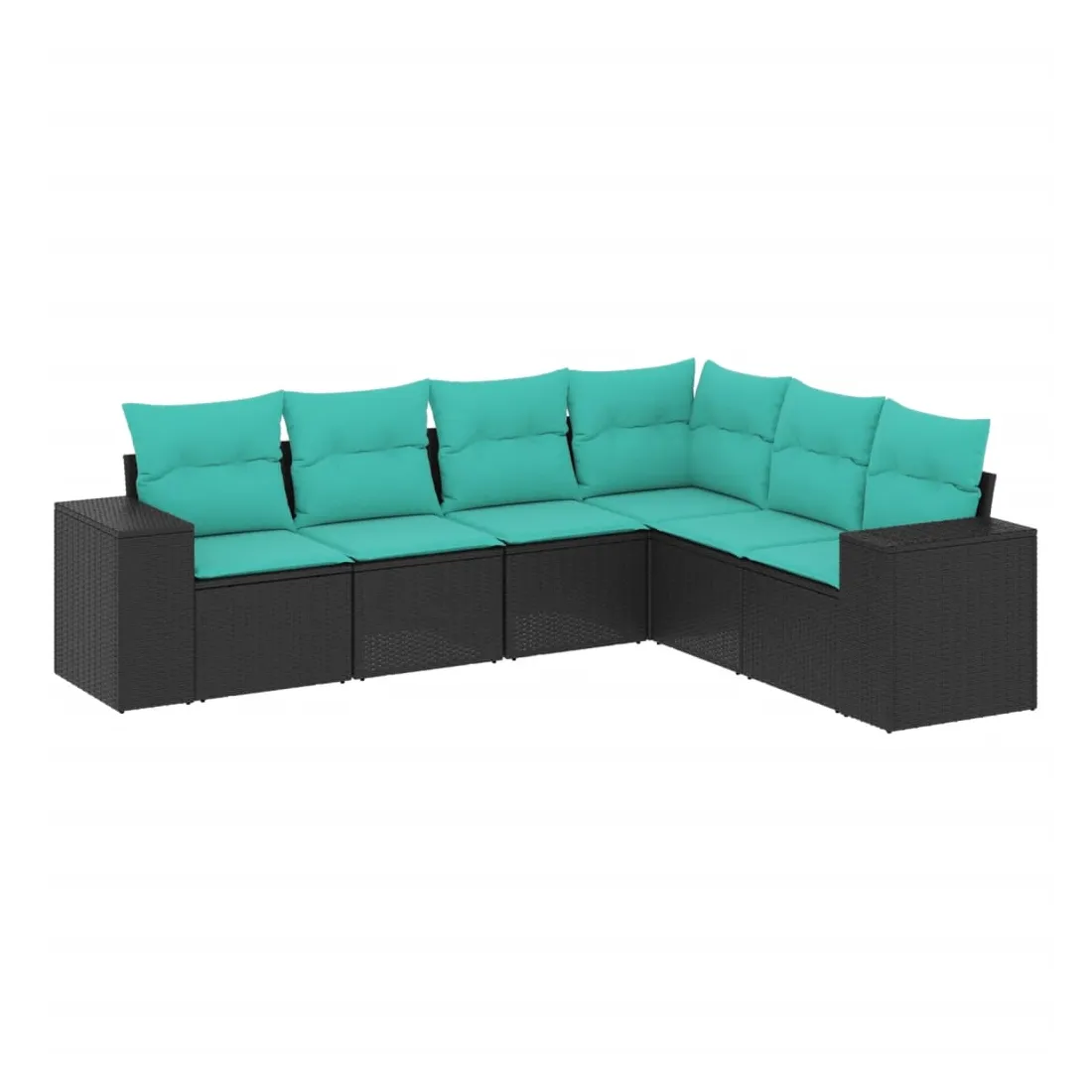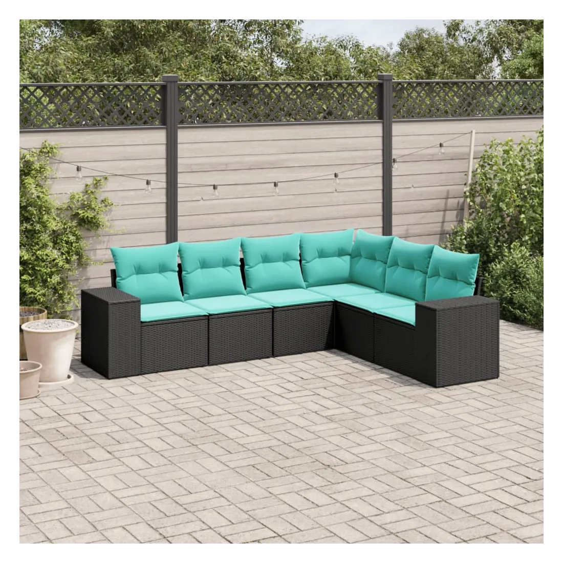 Salon de jardin 6 pcs avec coussins noir résine tressée