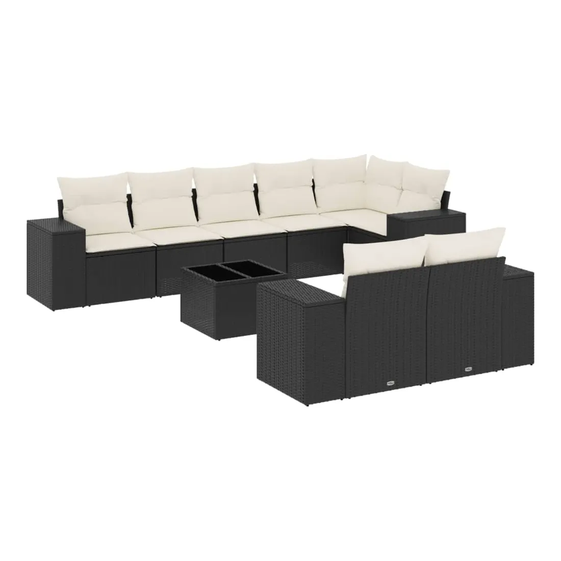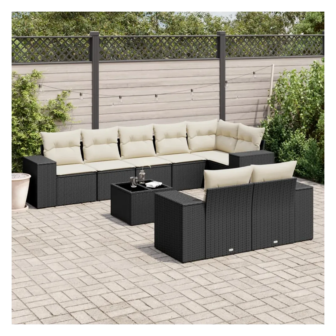 Salon de jardin 9 pcs avec coussins noir résine tressée
