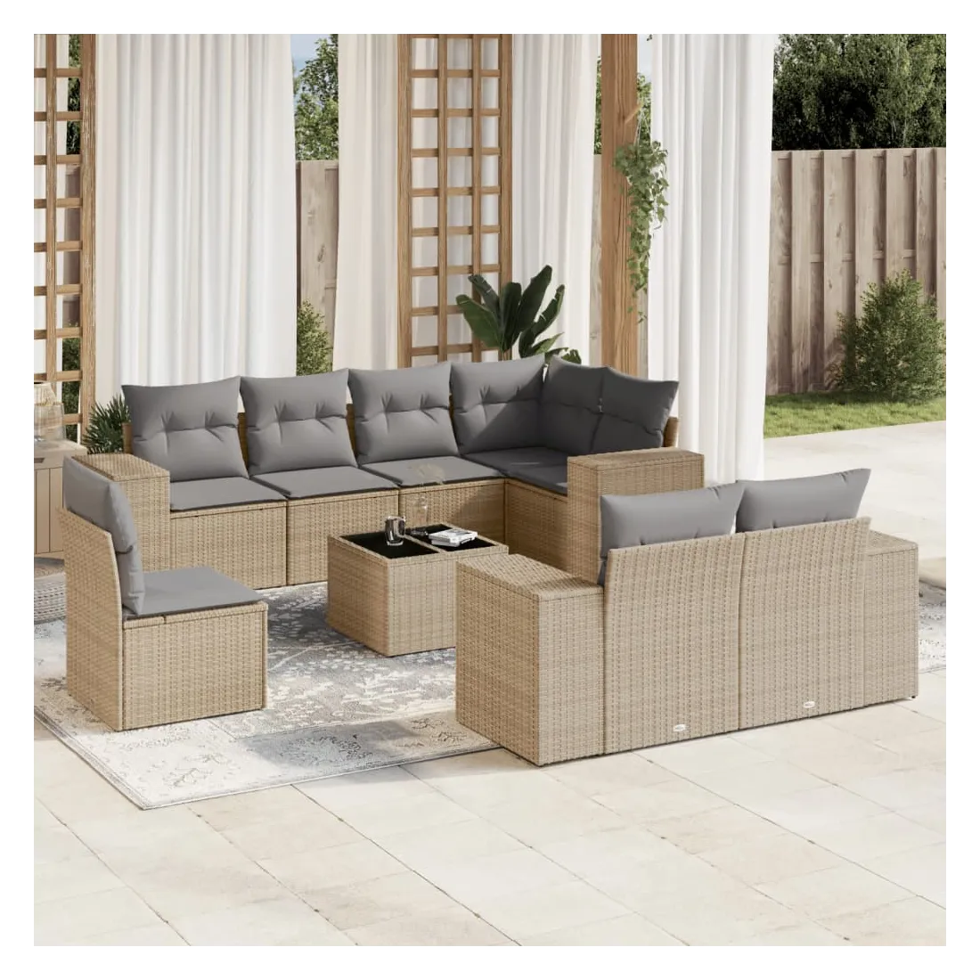 Cet ensemble de canapés de jardin est le complément parfait de votre arrière-cour, terrasse ou patio, offrant un espace confortable et accueillant pour discuter avec la famille et les amis ou simplement se détendre et profiter de l'extérieur. Matériau durable : la résine tressée, également connue sous le nom de poly rotin, est un matériau synthétique solide et nécessitant peu d'entretien qui ressemble au rotin naturel. Il est léger, facile à nettoyer et couramment utilisé pour les meubles d'extérieur en raison de sa durabilité et de ses propriétés de résistance aux intempéries.Expérience d'assise confortable : ce mobilier d'extérieur, doté de coussins épais, offre une expérience d'assise confortable.Dessus en verre : le dessus de la table d'extérieur est fabriqué en verre trempé solide et durable, ce qui le rend facile à nettoyer avec un chiffon humide et ajoute une touche d'élégance à votre espace extérieur.Housse amovible et lavable : ces coussins de siège sont dotés de housses amovibles pour un lavage et un entretien faciles.Conception modulaire : cet ensemble de meubles d'extérieur a une conception modulaire, ce qui le rend complètement flexible et facile à déplacer, afin que vous puissiez créer un agencement de meubles d'extérieur personnalisé. Bon à savoir :Pour que vos meubles d'extérieur restent beaux, nous vous recommandons de les protéger avec une housse imperméable.