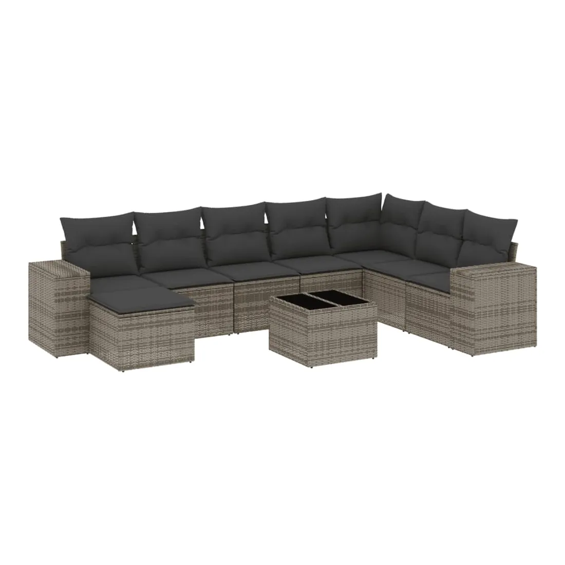 Cet ensemble de canapés de jardin est le complément parfait de votre arrière-cour, terrasse ou patio, offrant un espace confortable et accueillant pour discuter avec la famille et les amis ou simplement se détendre et profiter de l'extérieur. Matériau durable : la résine tressée, également connue sous le nom de poly rotin, est un matériau synthétique solide et nécessitant peu d'entretien qui ressemble au rotin naturel. Il est léger, facile à nettoyer et couramment utilisé pour les meubles d'extérieur en raison de sa durabilité et de ses propriétés de résistance aux intempéries.Expérience d'assise confortable : ce mobilier d'extérieur, doté de coussins épais, offre une expérience d'assise confortable.Dessus en verre : le dessus de la table d'extérieur est fabriqué en verre trempé solide et durable, ce qui le rend facile à nettoyer avec un chiffon humide et ajoute une touche d'élégance à votre espace extérieur.Housse amovible et lavable : ces coussins de siège sont dotés de housses amovibles pour un lavage et un entretien faciles.Conception modulaire : cet ensemble de meubles d'extérieur a une conception modulaire, ce qui le rend complètement flexible et facile à déplacer, afin que vous puissiez créer un agencement de meubles d'extérieur personnalisé. Bon à savoir :Pour que vos meubles d'extérieur restent beaux, nous vous recommandons de les protéger avec une housse imperméable.
